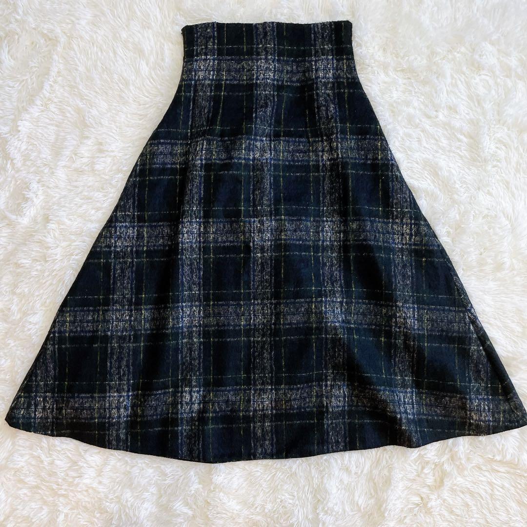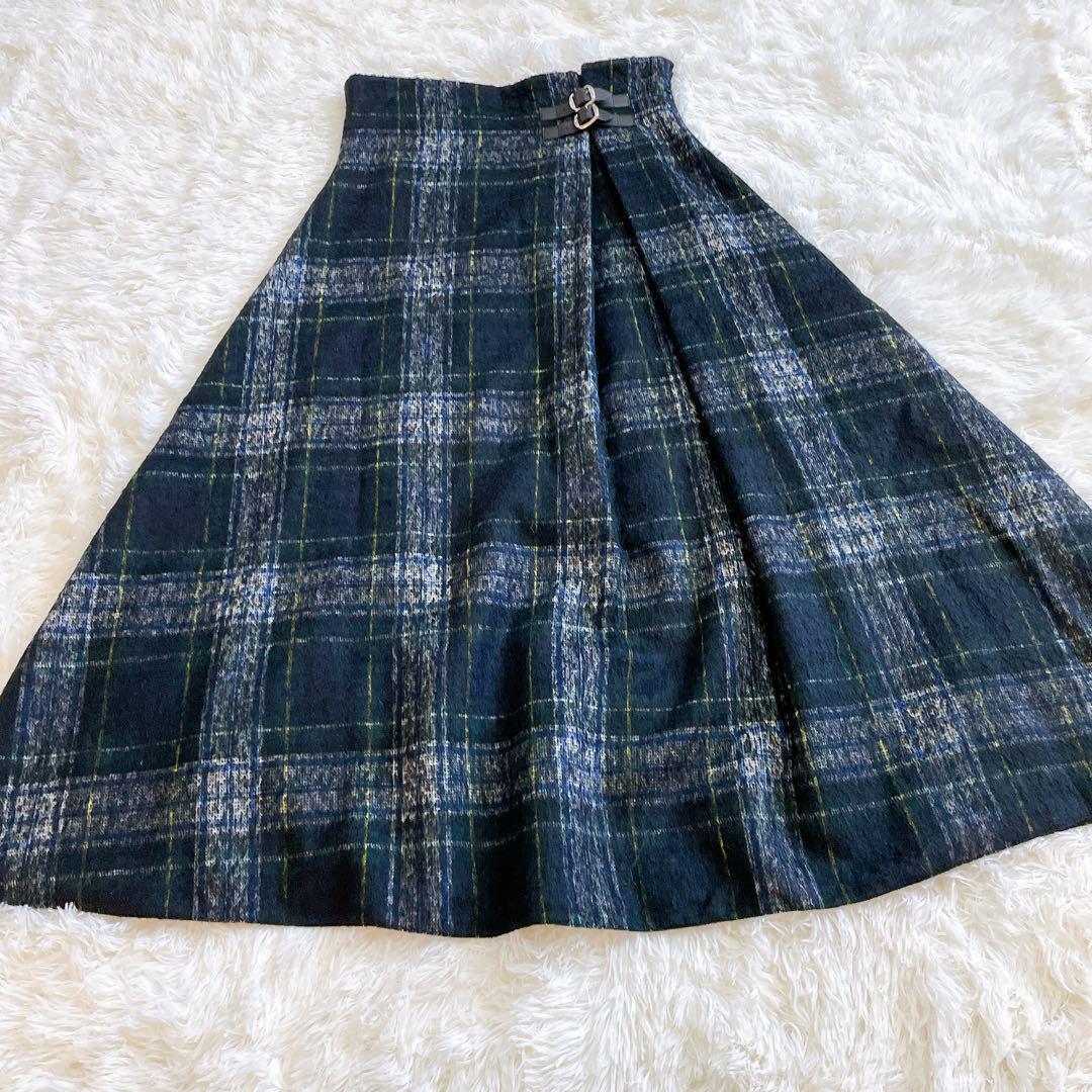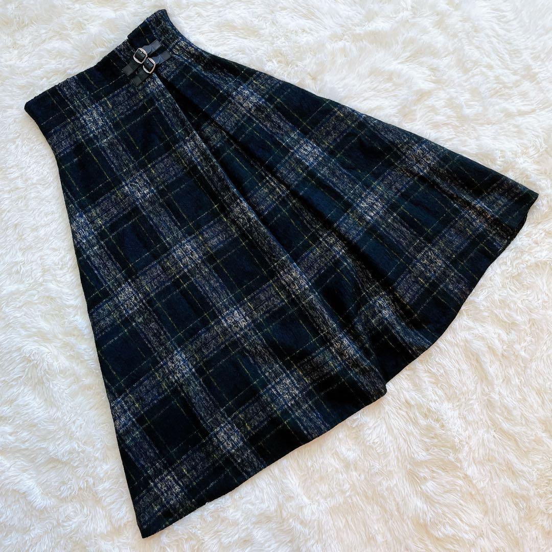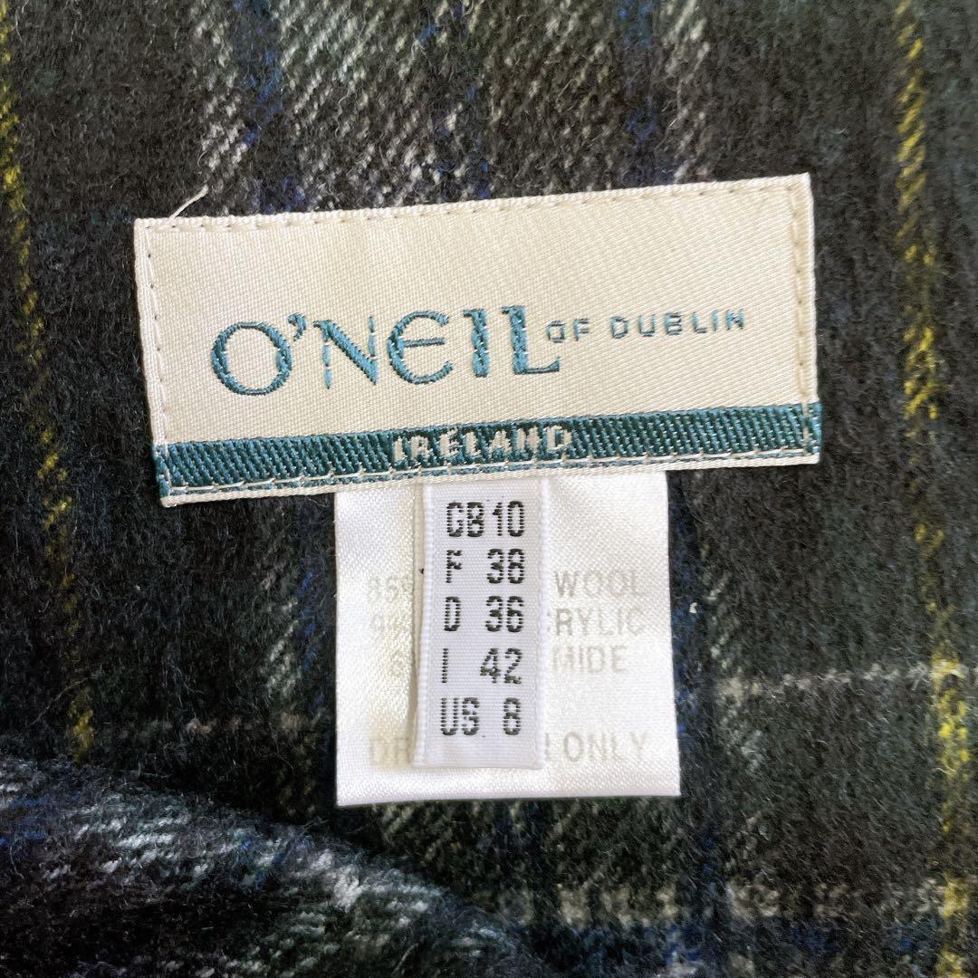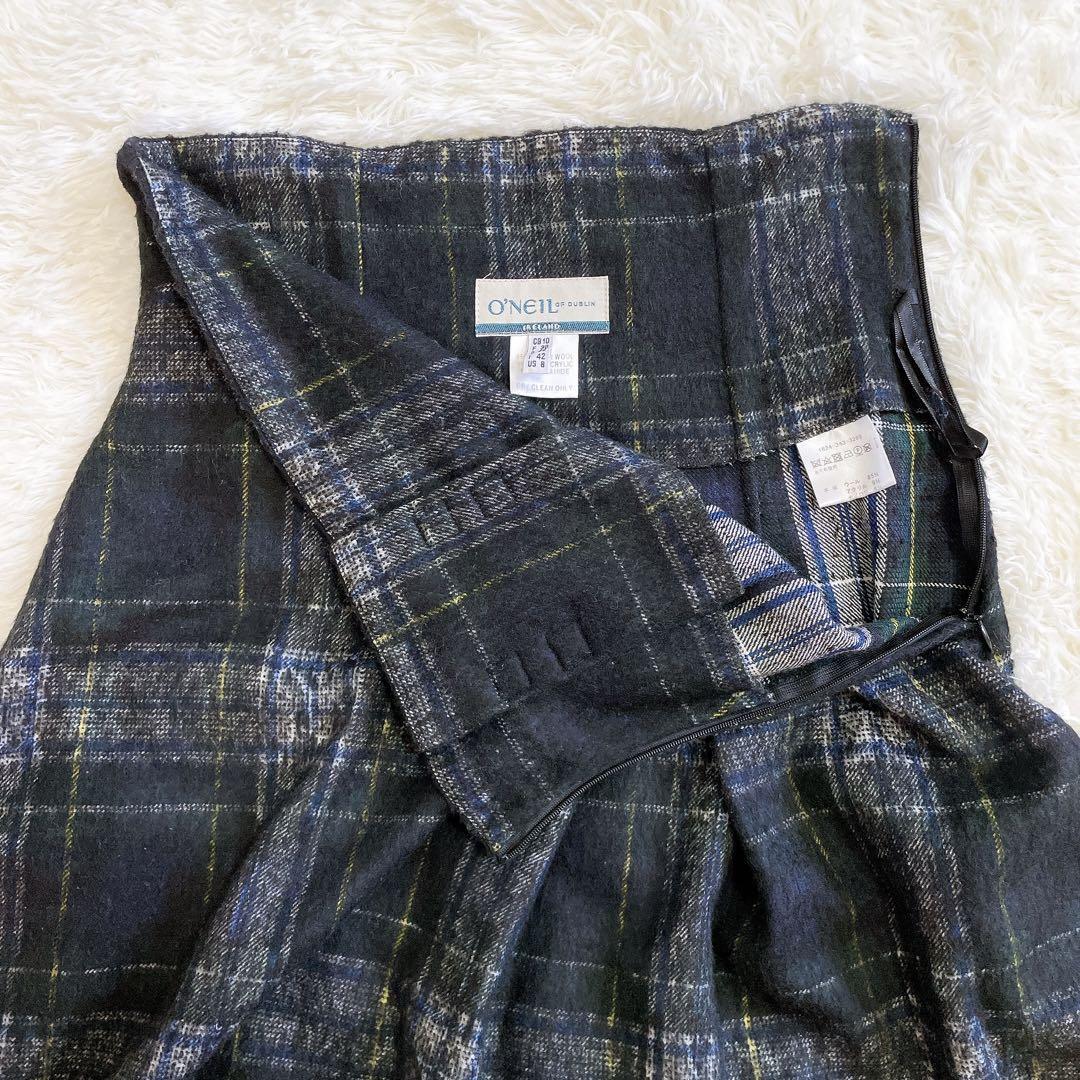 オニールオブダブリン O'NEILofDUBLIN チェックスカート タータンチェック バックルスカート サイドベルト ミモレ丈 ウールスカート ネイビー グリーン レディース トラッド クラシカル きれいめ カジュアル 秋冬 正規品