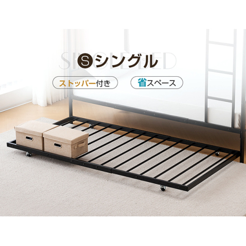ブラック 195*97cm パイプベッド シングル 収納 北欧風 子供部屋 送料無料 スチール 耐震 ベッド