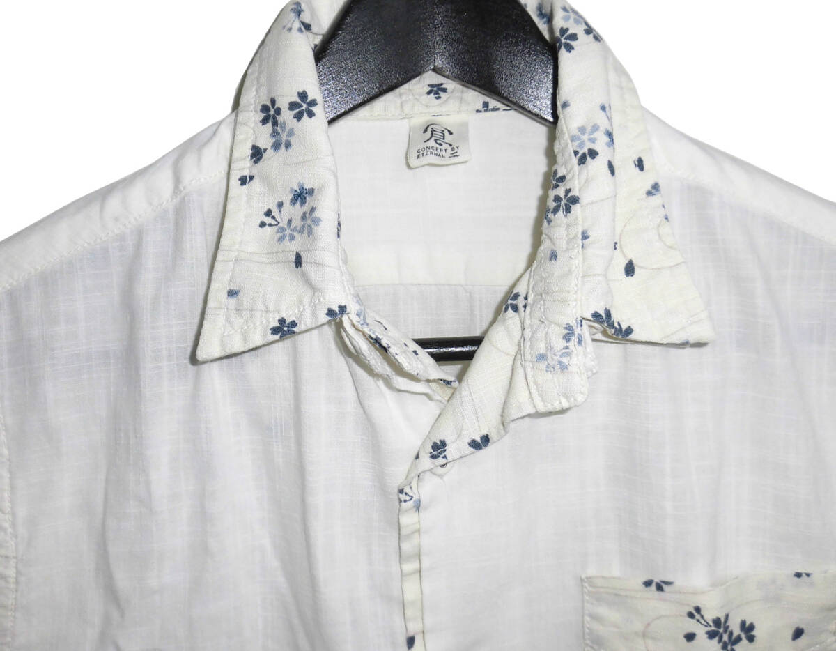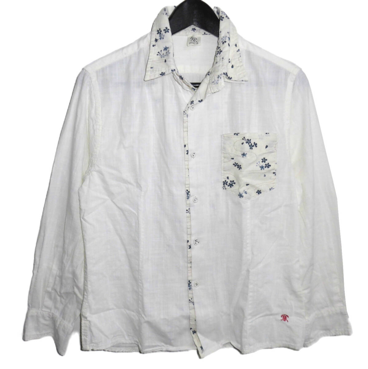 美品 ETERNAL エターナル 倉 和柄切替 ダブルカラー 長袖シャツ M