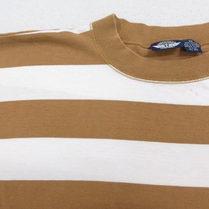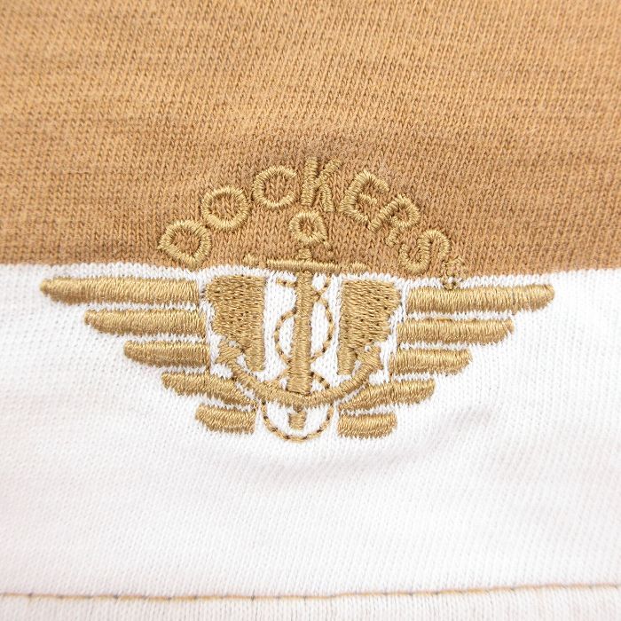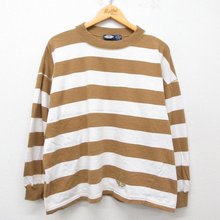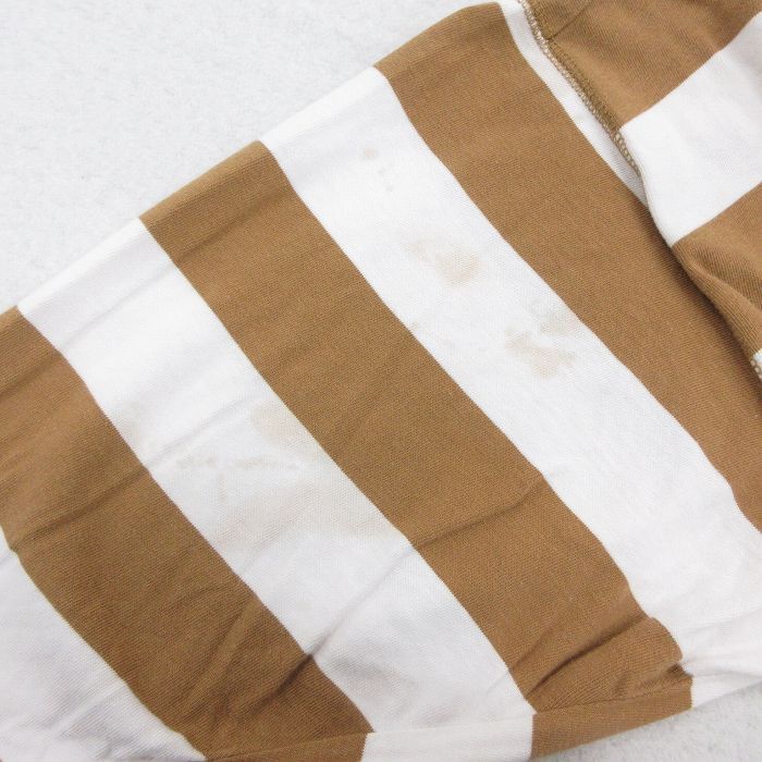 【商品名】 古着 ドッカーズ 長袖 ビンテージ Tシャツ レディース 90年代 90s ワンポイントロゴ 大きいサイズ コットン クルーネック ベージュ他 ボーダー