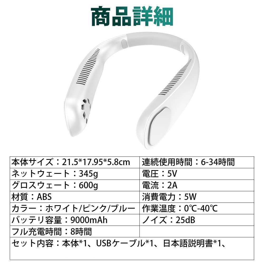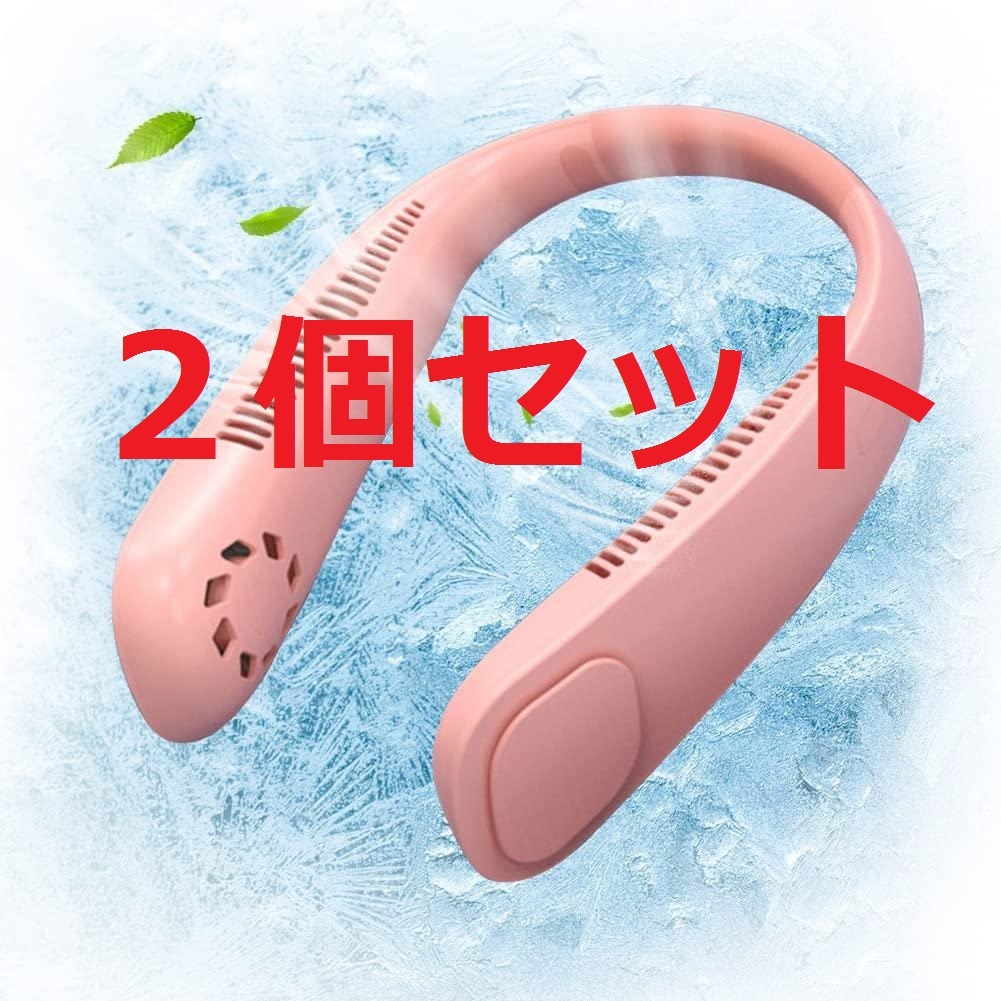 2個セット☆9000mAh大容量「夏新登場・瞬間冷感首掛けクーラー」首掛け扇風機 最大34時間送風 羽根なし 軽量 25dB静音 3段階風量 ピンク