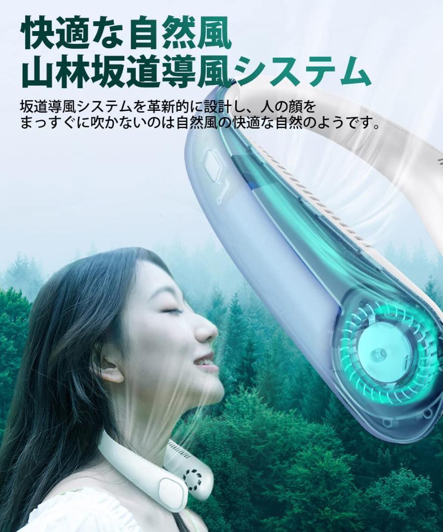 • 無葉安全と360°気流:無葉安全設計は普通の首のファンのように髪を絡めることはありません。ブラシレスモーターのデュアル隠し式タービンは46個の吹き出し口を持つ空気噴射を提供し、首の周りに360度の強い気流を提供し、騒音低減約25 db、柔らかく涼しいそよ風をもたらします