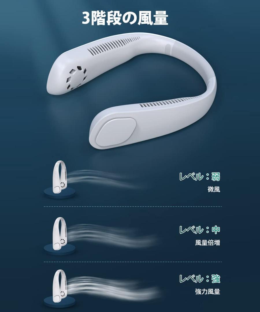 • 超長動作時間・3階段の風量:ウェアラブルネッククーラーには、4500mAh*2=9000mAhリチウム電池が内蔵されており、大容量電池は6~34時間の動作時間を提供します。電源スイッチを繰り返し押して3階段の風量を調整します