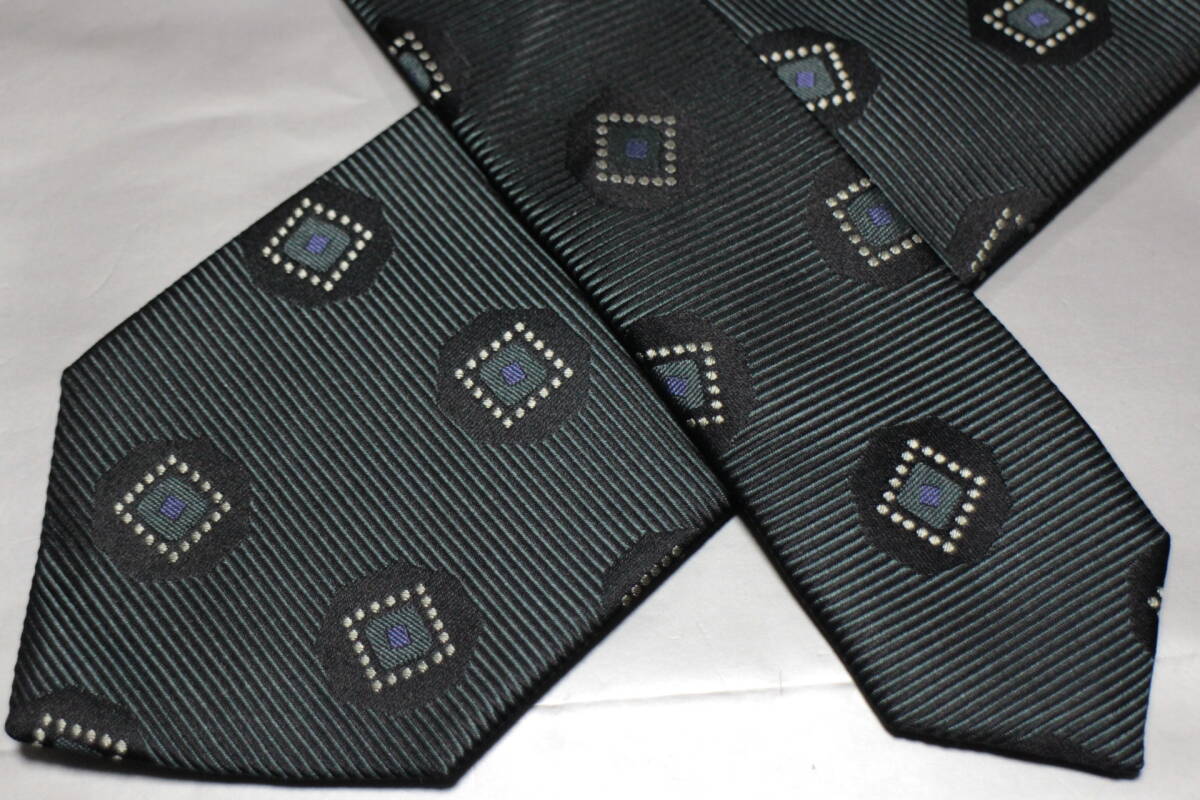 ユナイテッドアローズ*カネパ新品ネクタイ超艶美麗グリーン*ブルー*ダークネイビー小紋極上ツイル織シャンブレー幾何学柄ハンドメイド
