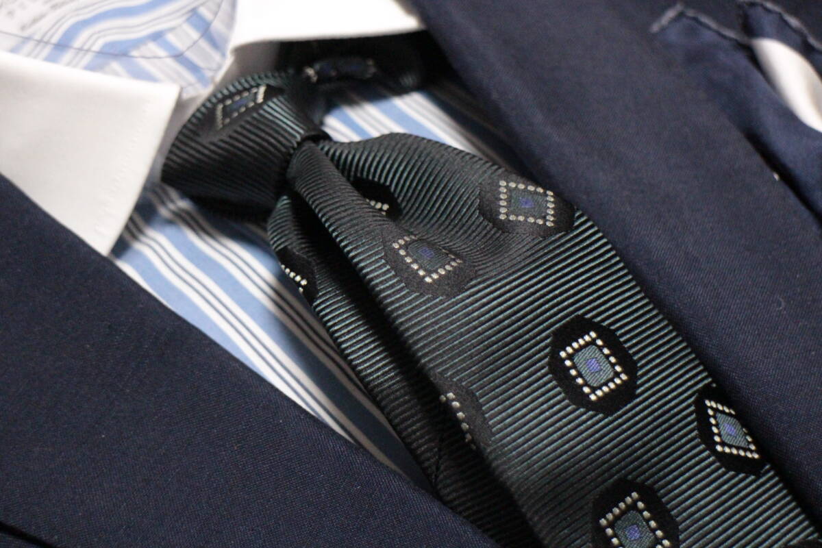 小紋タイです。グッチ等のビッグメゾンのOEMを数多く手掛ける、イタリア屈指の