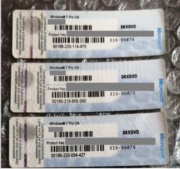 A送料無料 発送前キー写真通知 3枚セット Windows 7 Pro OA プロダクトキーシール 32Bit/64Bit 認証保証b