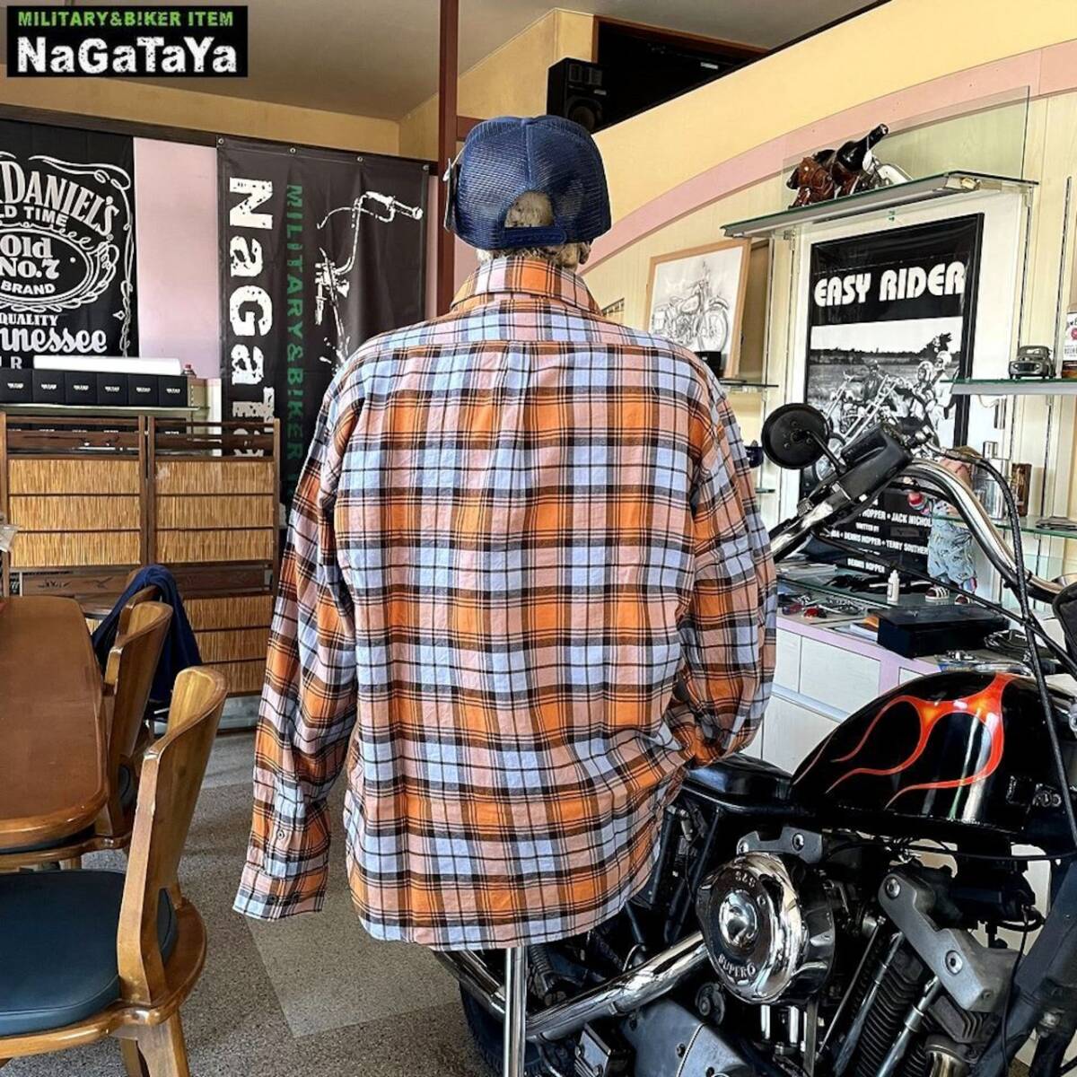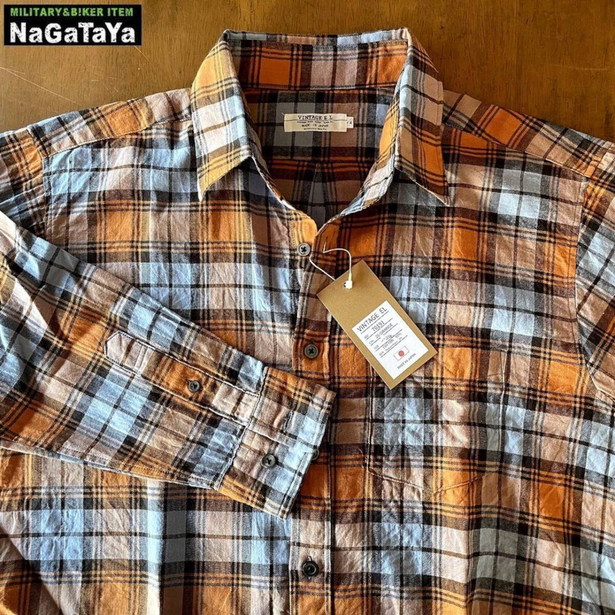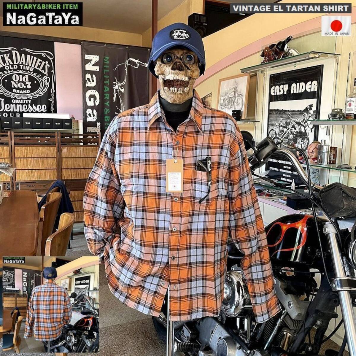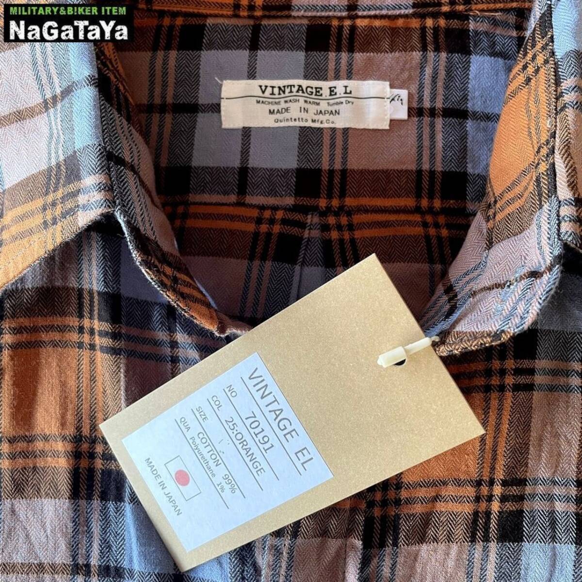 VINTAGE EL ヴィンテージ イーエル メンズ 長袖 タータンチェック シャツ オレンジ XLサイズ 薄手 カジュアルシャツ アメカジ 日本製