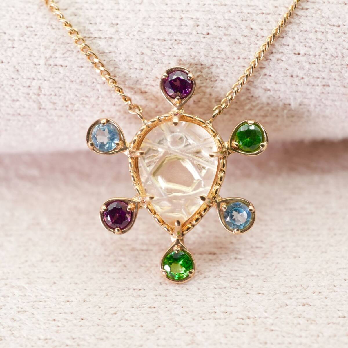 美品 アガット マルチカラー K10 ネックレス/24-4457