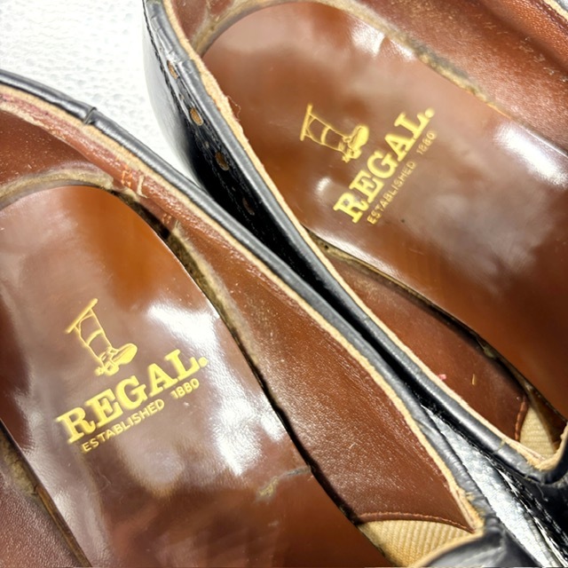 ご覧いただき、ありがとうございます。 オシャレで高級感のあるREGAL リーガルのスビジネスシューズです。 デザイン性:機能性共に定評のある商品です。 1足押さえてあるとファッションの幅も広がり大活躍するお勧めの商品です。 中古品のため、スレや傷、ヨゴレ等ありますが、その分お値打ちにしております。詳しい状態は画像でご確認ください。 商品のサイズについて 表記サイズ 23.5EE アウトソール全長 約26.3cm 全幅 約9.0cm (素人採寸) ●状態①「外観」 履きジワ、着用に伴う擦れ、傷がございますが、着用に支障はございません。くわしくは画像で確認ください。 ●状態②「ソール・インナー」 インソール内残っています。 ●その他・付属等なし、シューズキーパーは撮影用です。 | |||