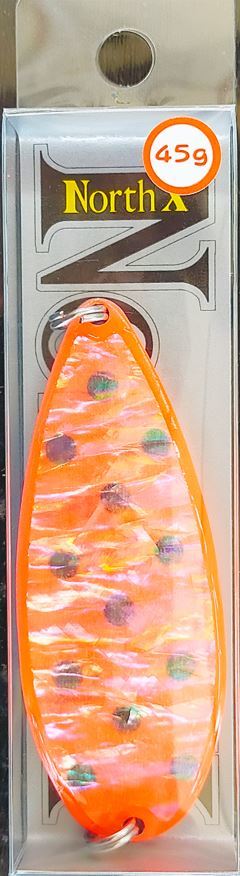 新品未使用品 自重:45g 全長:75mm カラー:#05S【蛍光レッド/黒点】 ノース エックス SHELL(天然日本アワビ) フィールドハンターがサーモンスペシャルルアーとしてノースアングラーへリリース。 空気抵抗を抑え、飛距離をアップ。最小限での水絡みがよく、スローでイレギュラーにサーモンを誘います。ボートでのサーモンフィッシングや浮きルアーフィッシングに最適です。フィニッシュは天然日本アワビ&ハードコートでハイクオリティーに仕上げました。 |