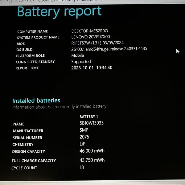 【おすすめポイント】 ・中古整備済です。 ・動作確認済み、すぐ使用OK。 ・高速SSD換装済み。起動かなり早いです。 ・Microsoft Office 2024ライセンス認証済み ・液晶は綺麗な状態です。 ・バッテリー良好 【商品の説明】 ★メーカー:Lenovo ThinkPad L13 Gen2 ★型番:20VJS17X00 ★CPU:Core i7-1165G7 2.80GHz ★メモリ容量:16GB ★ストレージ容量:256GB ★OS:Windows11Pro ★画面サイズ:13.3型 ★光学ドライブ:なし ★無線LAN:有り ★HDMI:有り ★Webカメラ:有り 【訳あり内容】 ・充電差込口は2つありますが、1つは不良です。※画像9参照 ・本体にヒビ、欠損があります。※画像10参照 【確認事項】 ・電源・起動 OK ・無線wifi接続 OK ・キーボード入力 OK ・タッチパッド操作 OK ・カメラ OK ・外装、キーボード清掃済み ・電源アダプター付属 【注意事項】 ※中古品につき、細かいすり傷、汚れなどはご了承お願いいたします。 ※バッテリーは保証外とさせて頂きます。消耗品につき劣化している可能性あります。 ※精密機器につき、出品時(動作確認時)から時間が空きますと思わぬ不具合が起きる場合があります。その際代替品、キャンセルのご提案をさせて頂く場合がございます。ご了承お願いいたします。 ※お届けした商品に初期不良があった場合は、速やかにご連絡ください。当社で確認のうえ、初期不良として交換もしくは返品対応いたします。 なお、返送される際の発送料金は当社負担とさせていただきます。 それ以外の理由による交換・返品には応じられませんので、あらかじめご了承ください。 【配送料について】 送料本土一律:1,000円(税込) ※北海道:1,200円(税込) ※沖縄、離島:2,000円(税込) ※2点までは送料変わらず同梱可能です。 3点目以降、1点につき+500追加送料発送いたします。 |