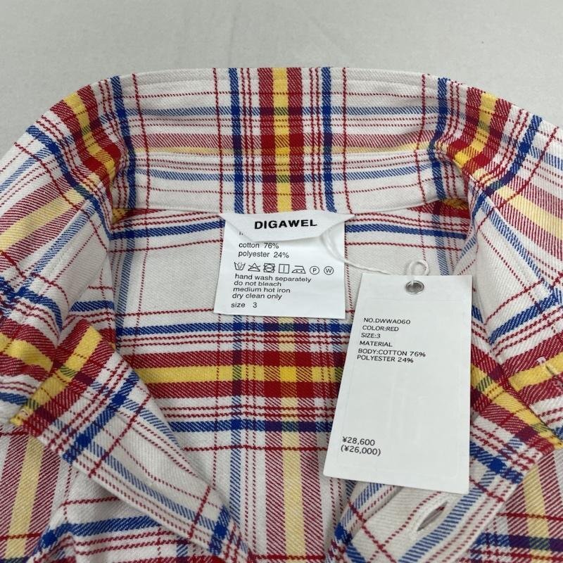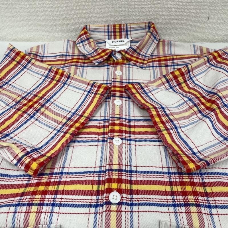 ディガウェル 23SS チェック 半袖 シャツ DWWA060 ボタン 大きめ ショートスリーブ マルチカラー タグ付き 3