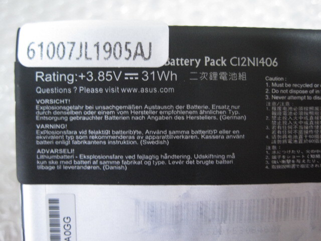 新品 Asus C12N1406 修理互換内蔵バッテリー 3.85v 31Wh ジャンク扱い