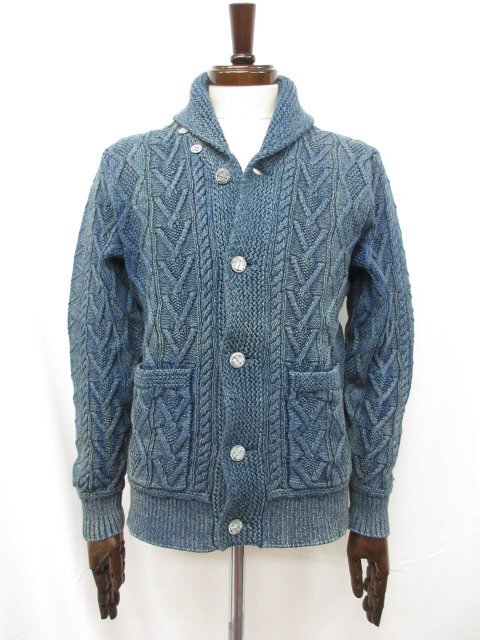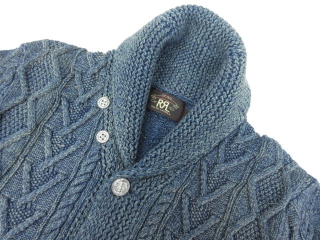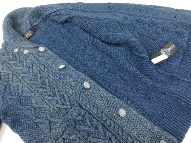HH未使用【RRL ダブルアールエル】コットン100% ケーブル編みニット カーディガン(メンズ)size170/92A 黄みがかったネイビー系◯33MN5566