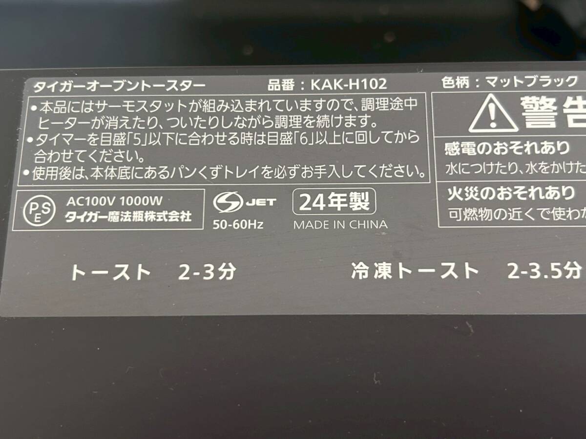 10-40 TIGER タイガー オーブントースター KAK-H102 マットブラック 24年製 通電・動作確認済 画像分 現状品 返品交換不可 | ||