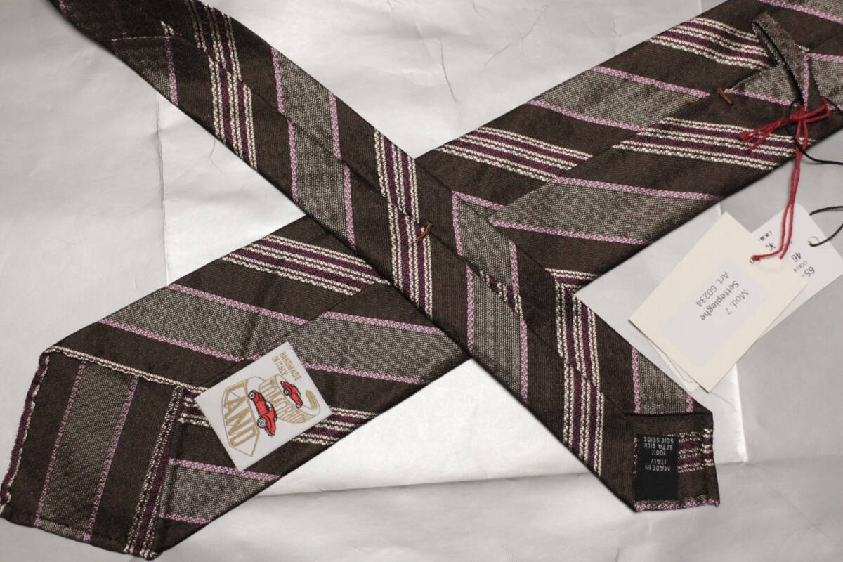 アットヴァンヌッチ*トゥモローランド別注新品ネクタイ超華麗モダンブラウン*シルバー*パープル*ラベンダーレジメン極上セッテェピエゲ
