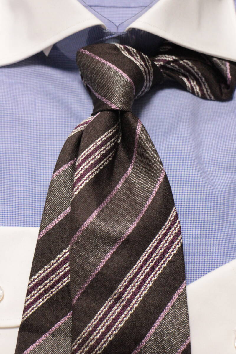 レジメンタルタイ。一見して、超高級品のオーラを漂わせる複雑な織柄と