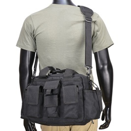 メイン収納側一面がベルクロテープパネルとなった、ハンドガン用の収納スペースもあり、付属のユニバーサルホルスターで銃の保持が可能。メイン収納部はベルクロ雄が施された仕切りが付いており、荷物の量に応じて、また、収納物の整理に使用することができます。