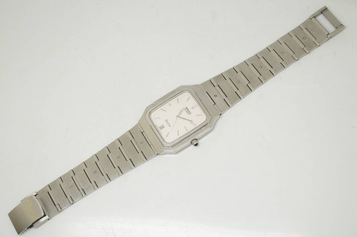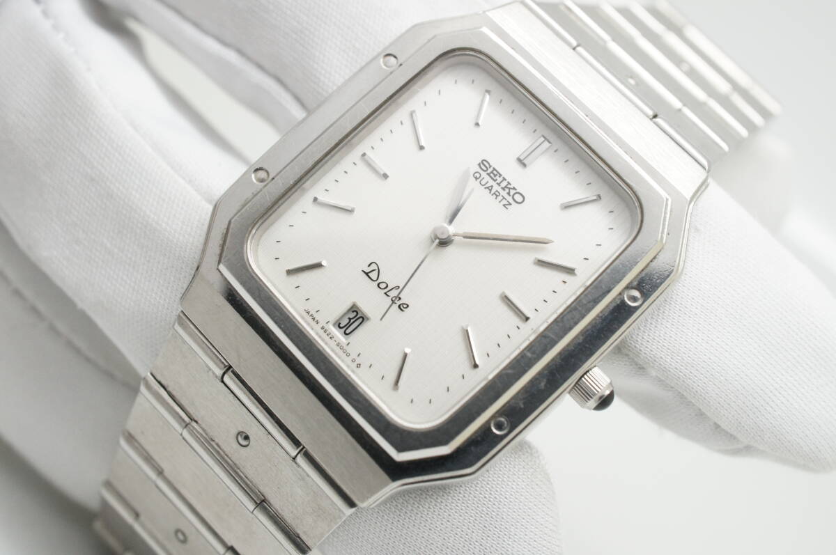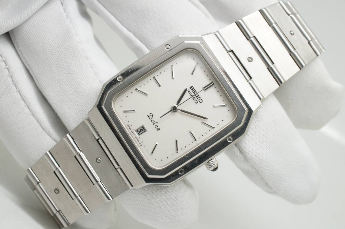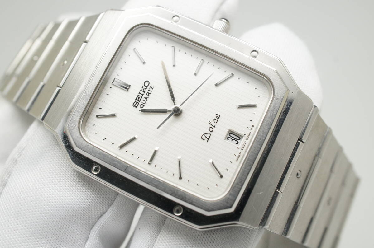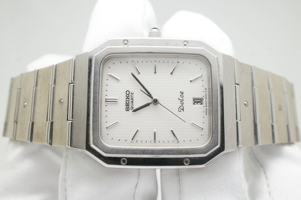 Z116●作動良好 希少レア 美品 SEIKO セイコー DOLCE ドルチェ 9522-5000 スクエア型 デイト メンズ腕時計 シルバー お洒落 クォーツ