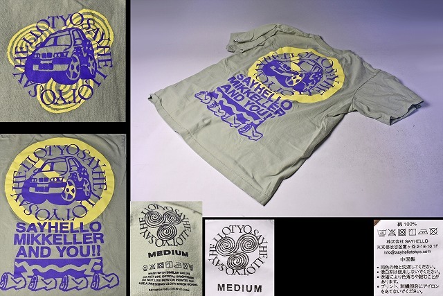MIKKELLER ★ バックプリント 半袖 Tシャツ ★ サイズ M 薄いグリーン系 ★ 渋谷 クラフトビアバーにて購入 オリジナル SAYHELLO CAR TEE