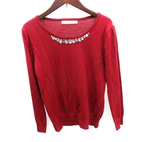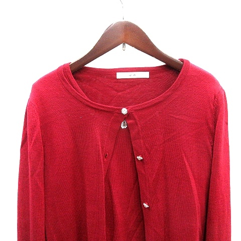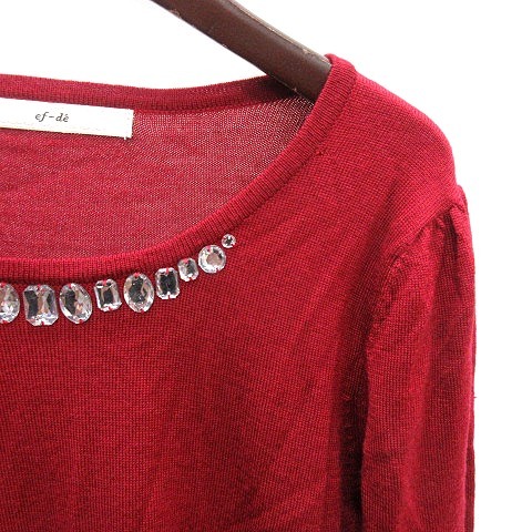 エフデ ef-de アンサンブル ニット カーディガン ウール 長袖 ニット セーター ビジュー 長袖 9 M 赤 レッド /AU レディース