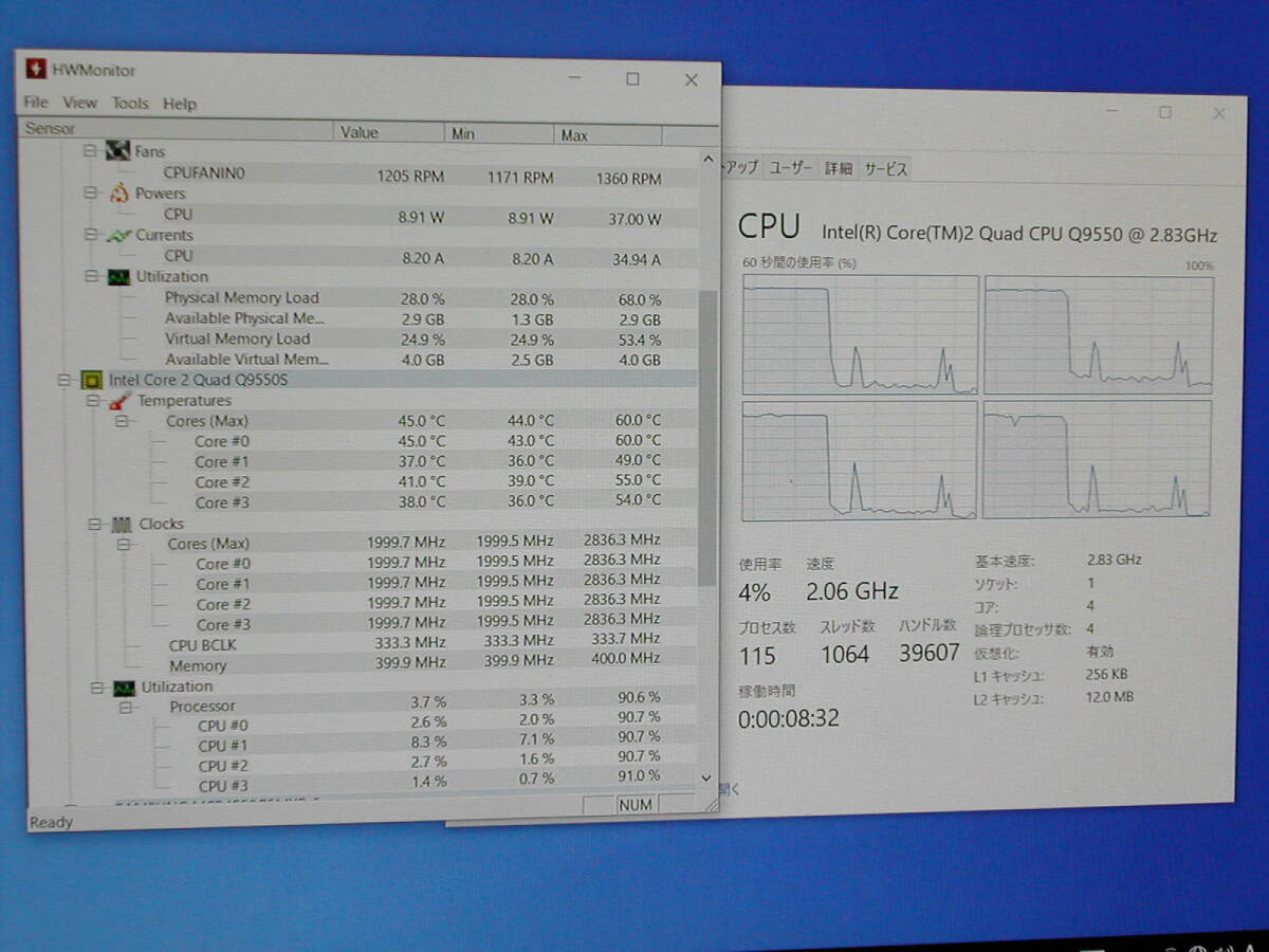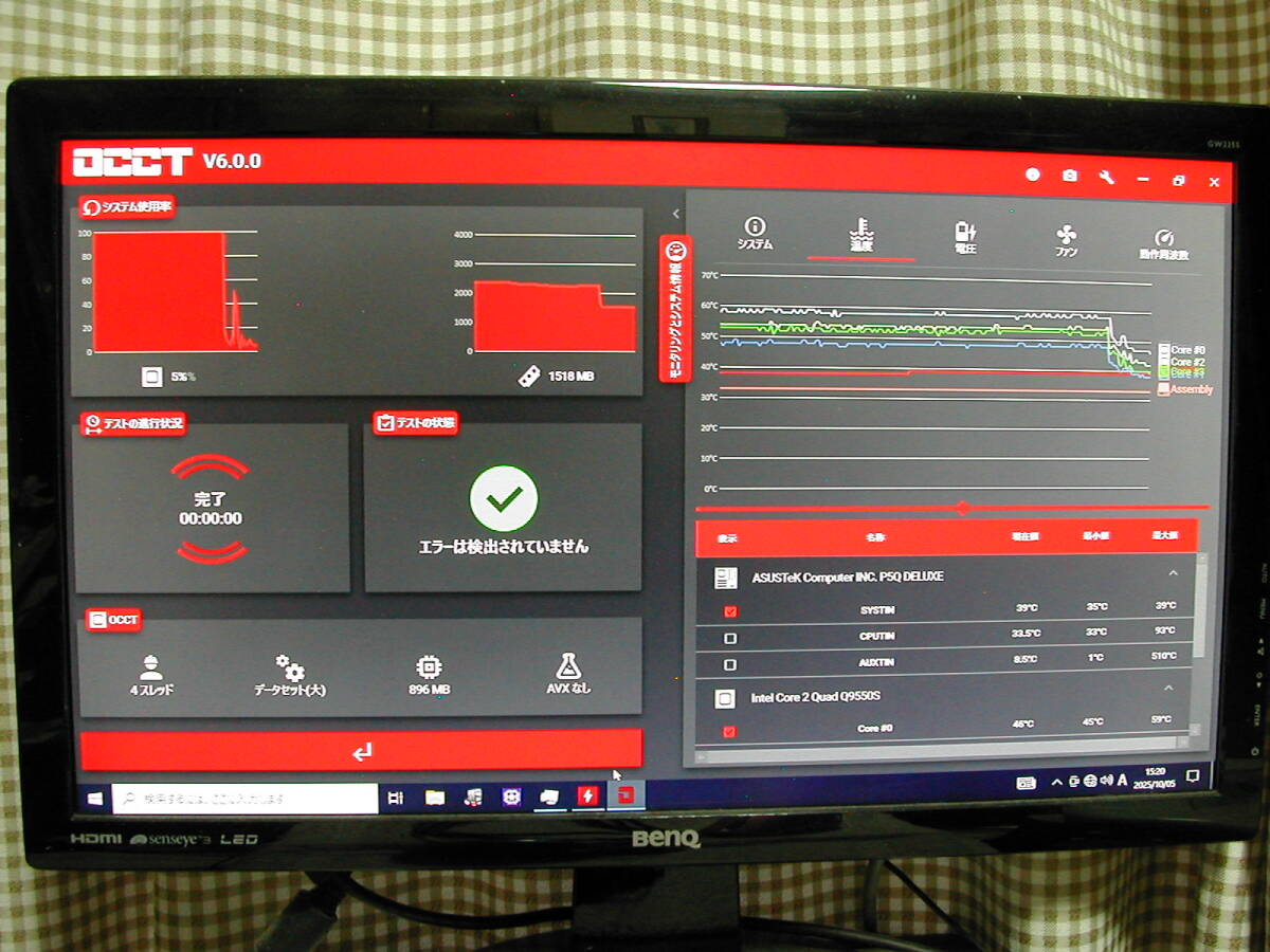 CPUの負荷が分かるソフト画像は負荷ソフトが終了した直後の画像です、このくらいの負荷状態でも普通に動いていました。