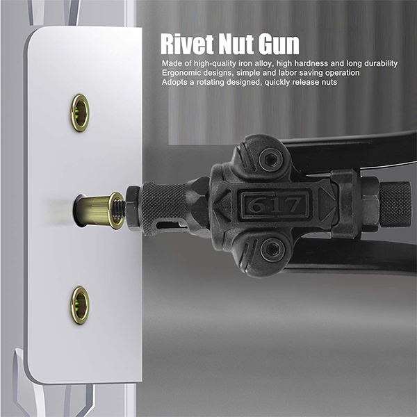 | 商品詳細 | 優れた鉄合金で作られており、高い硬度と長い耐久性があります。 回転式デザインにより、ナットを迅速に装着・取り外しできます。 作業ストロークは7mm、最大アーム力の倍率は38です。 人間工学に基づいたデザインで、簡単で労力を節約できる操作を提供します。 異なる仕様の7種類のチップが含まれています:M3、M4、M5、M6、M8、M10、M12。 両手式でアルミ、スチール&ステンレス材質のカシメナットのカシメ作業ができます。 ■商品仕様 ・本体全長:約27cm ・適応ナット材質:アルミ、スチール、ステンレス ・最大有効作業ストローク: 7mm ・使用可能サイズ:M3、M4、M5、M6、M8、M10、M12 ・付属品:スパナー、M3、M4、M5、M6、M8、M10、M12マンドレル&収納ケース ※かしめについてのご注意 かしめは、数回に分けて行ってください。 1回でかしめると、かしめナットやマンドリルが破損するおそれがあります。 例)1回目⇒ノブを締め込む 2回目⇒ノブを締め込む ノブは少しずつ締め込んでください。締め込み過ぎると、ストローク量が増える原因になります。 かしめナットが緩かったり、回ったりする場合は、かしめ不足です。 再度かしめてください。 |