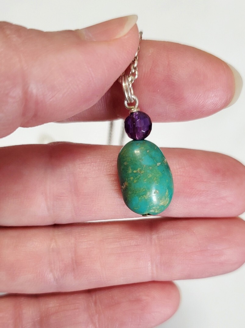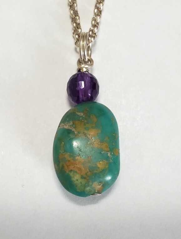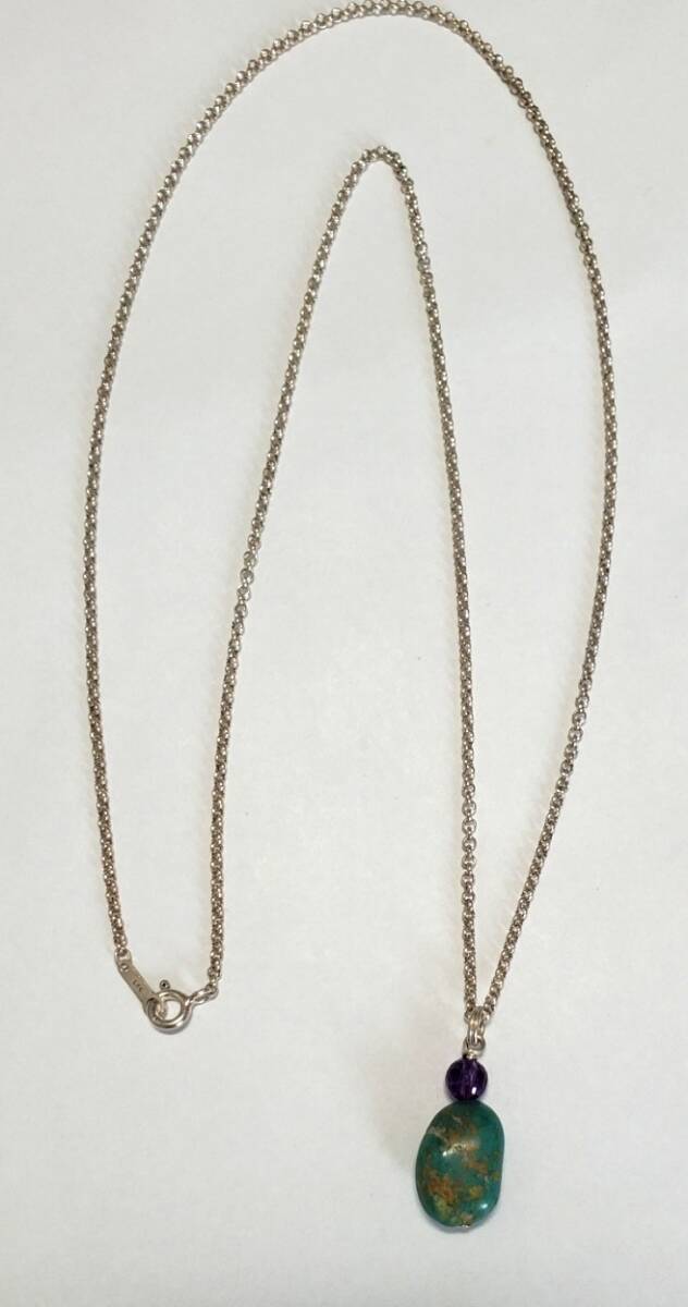 SILVER 925 シルバー925刻印  カラーストーン  アメジスト ペンダントトップ レディース アクセサリー  60,5㎝  7g  美品