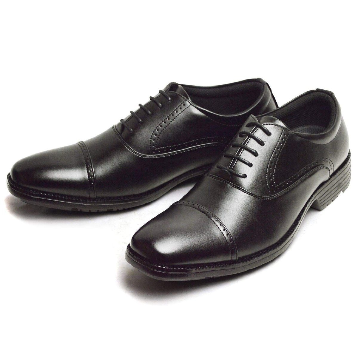 ビジネスシューズ メンズ 革靴 防水 内羽根 ストレートチップ メダリオン コンフォート ウォーキング 軽量 幅広 4EEEE 抗菌 7774