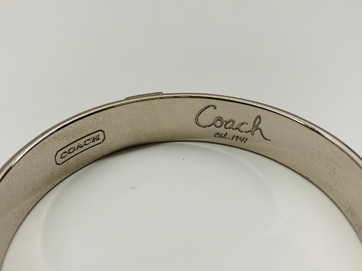 【良品】COACH コーチ シグネチャー バングル 腕輪 アクセサリー シルバーメッキ 腕回り約20cm 重さ約43.6g