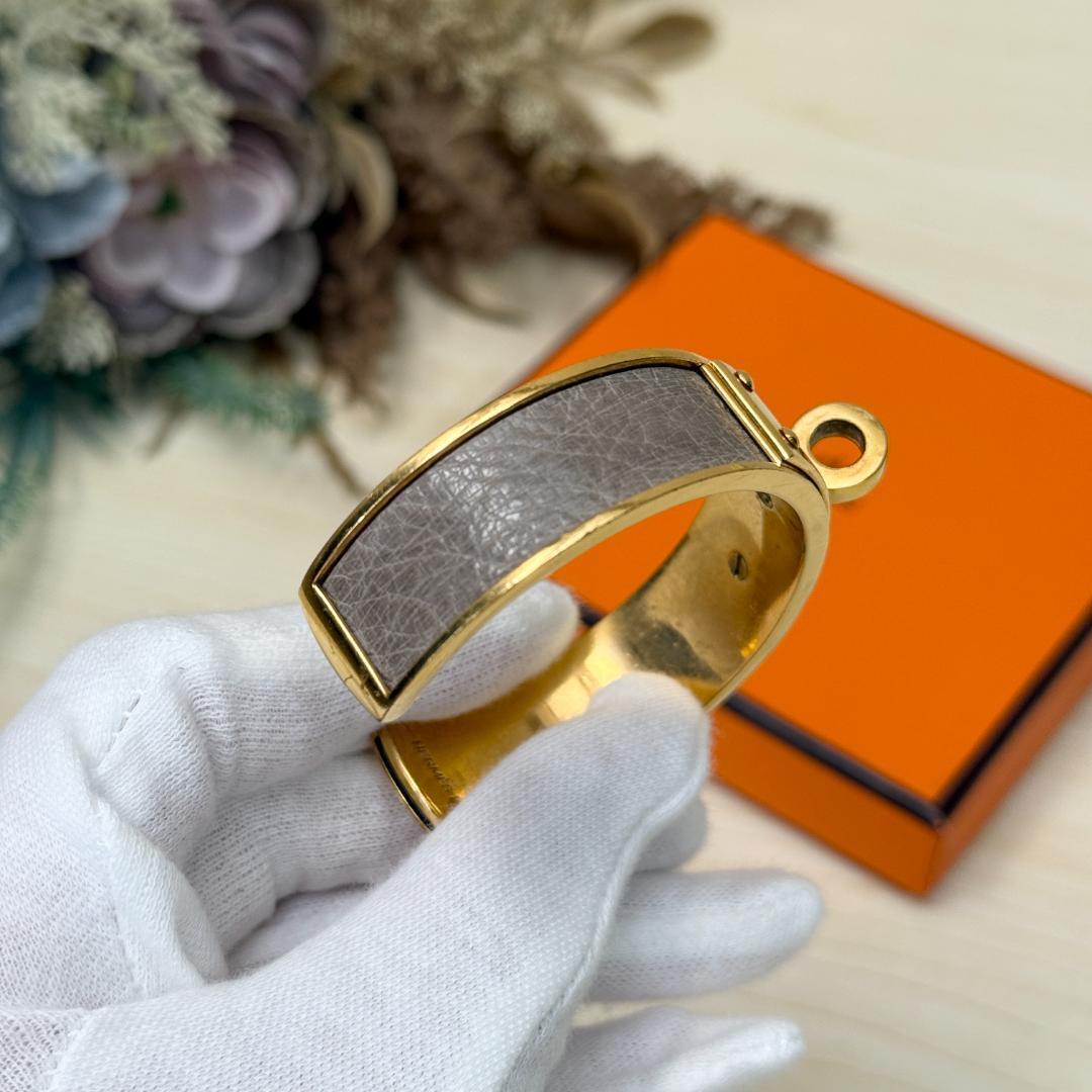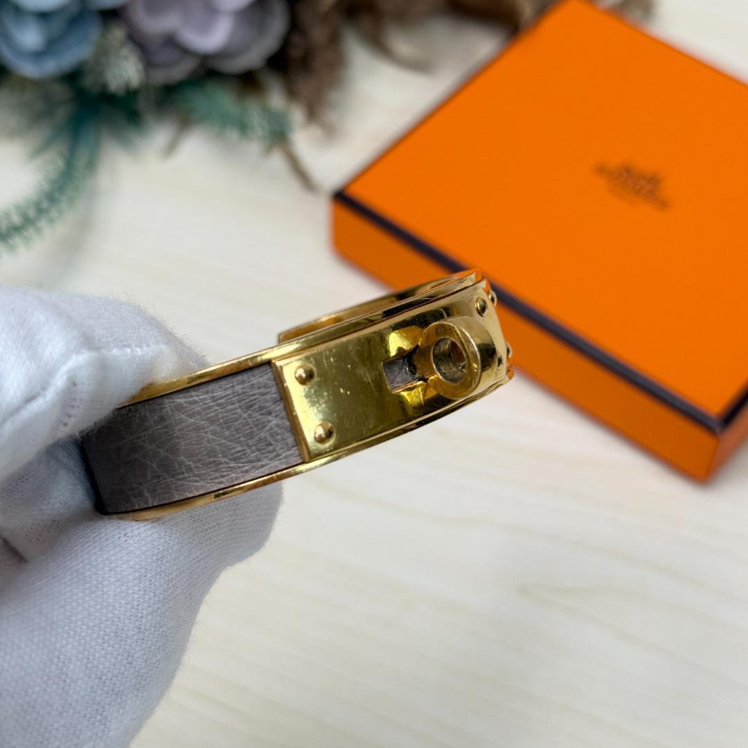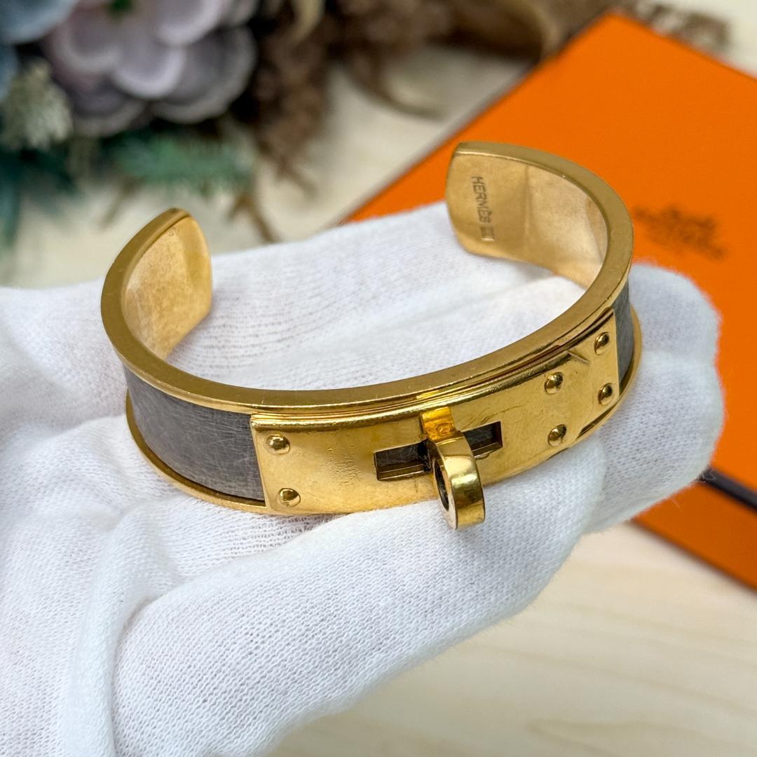 このケリー・バングルを身につけた瞬間、あなたの手元は一瞬にして洗練されたオーラを放ち始めます。エルメスの象徴である「ケリー」バッグの留め具をそのままブレスレットにしたこのデザインは、ただのアクセサリーではありません。それは、時代を超えて愛されるエレガンスと、確かな品質の証です。