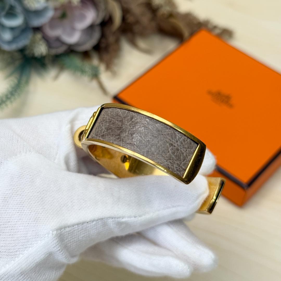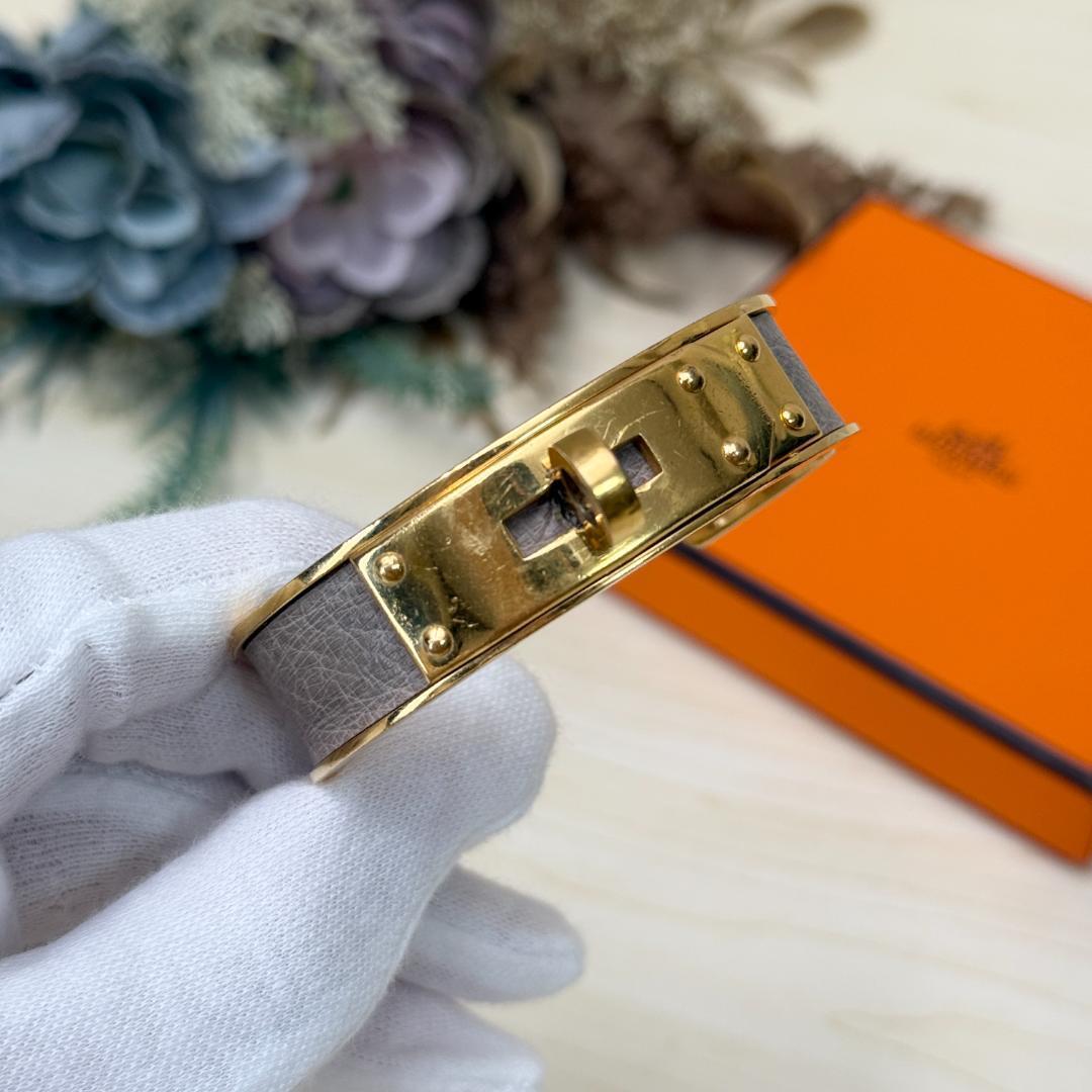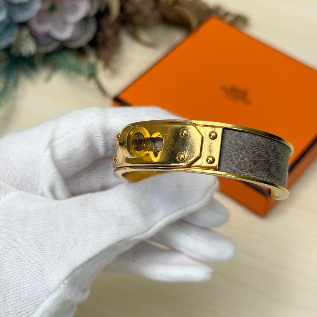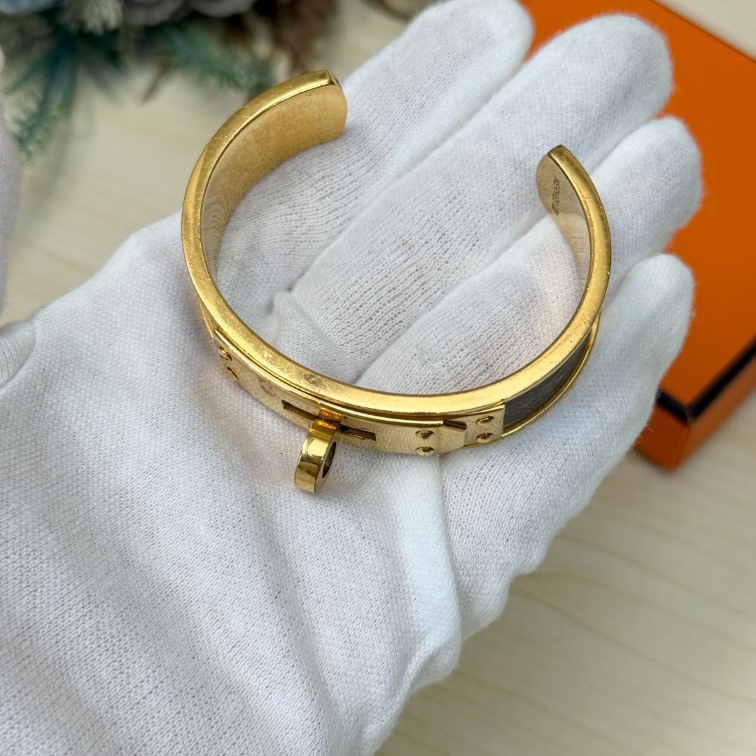 このケリー・バングルを身につけた瞬間、あなたの手元は一瞬にして洗練されたオーラを放ち始めます。エルメスの象徴である「ケリー」バッグの留め具をそのままブレスレットにしたこのデザインは、ただのアクセサリーではありません。それは、時代を超えて愛されるエレガンスと、確かな品質の証です。