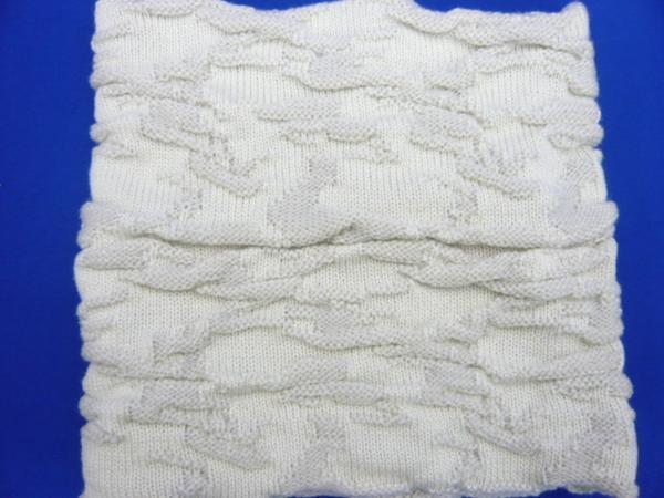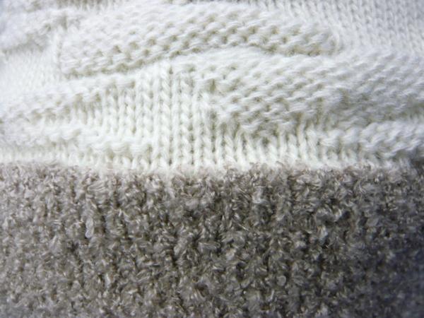 表地は凹凸感を出した特長のあるオシャレな柄編み、裏地は肌触りがとても良く温かなマシュマロ糸を使用♪