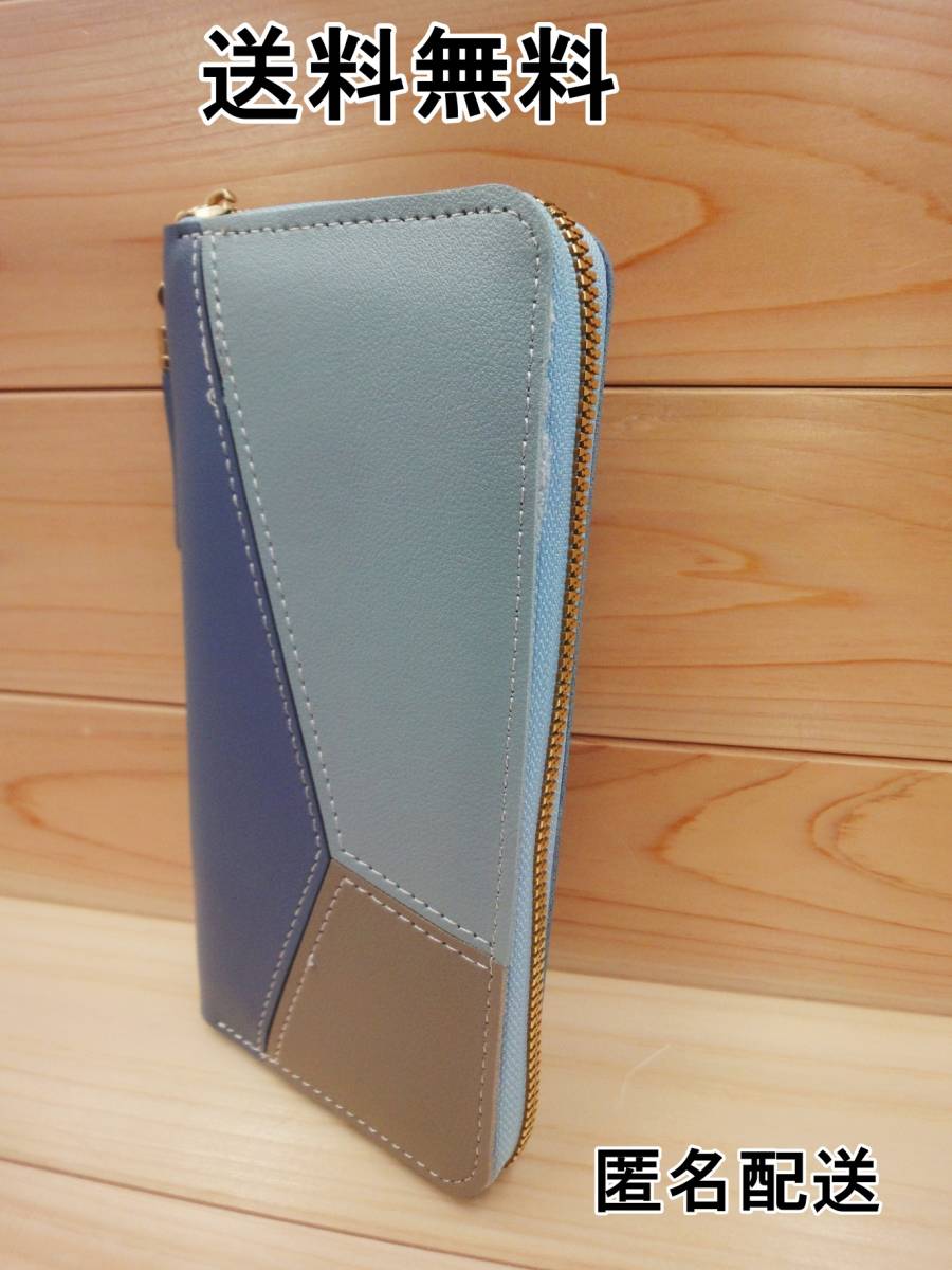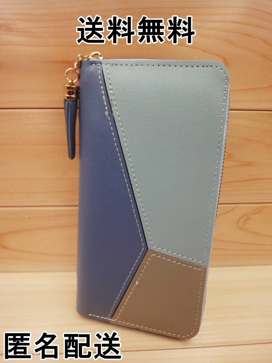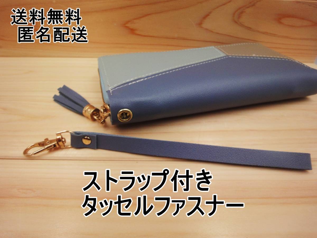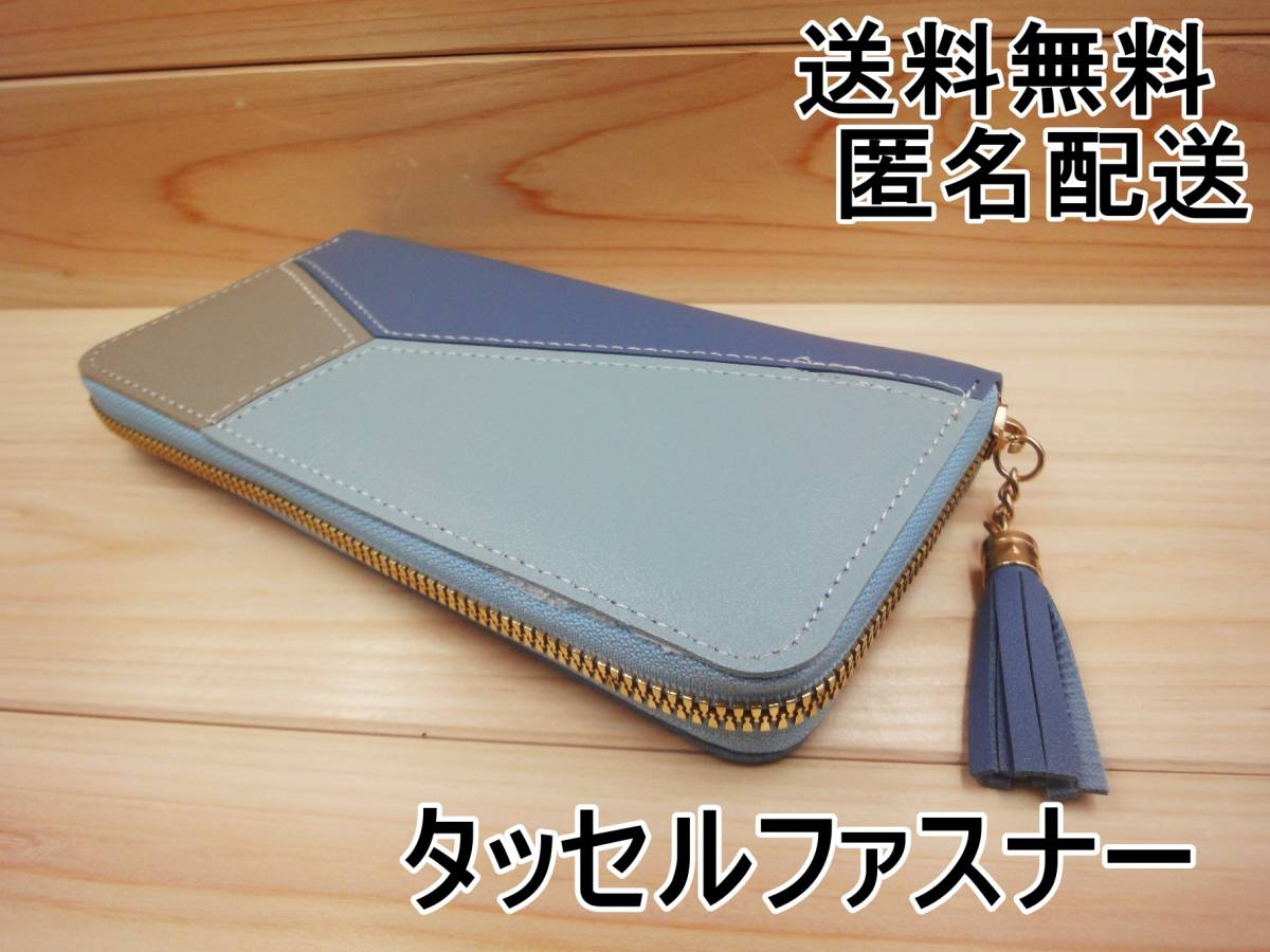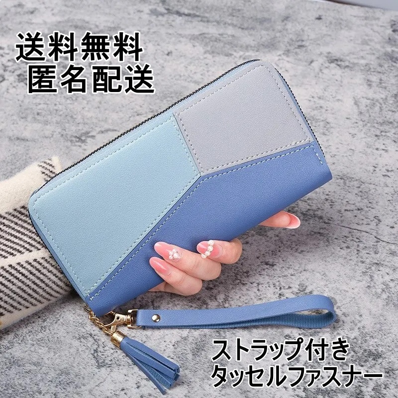新品未使用 ブルー タッセルジッパー レディース ロングウォレット ストラップ付き 財布 コイン カードホルダー puレザー 送料無料