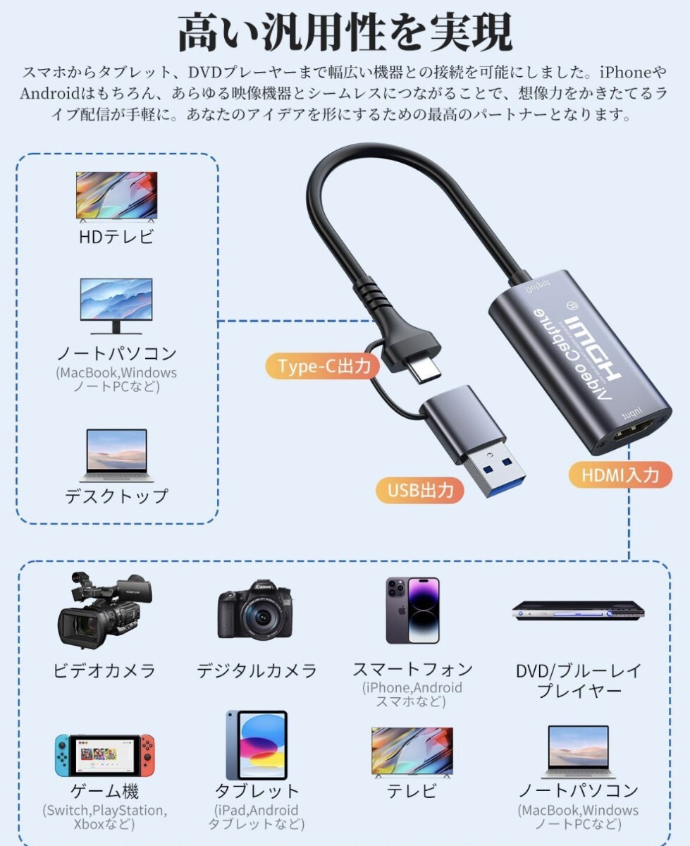 豊富な機能: ゲーム録画、動画キャプチャー、ストリーミングキャプチャーなど、幅広い用途に対応しています。