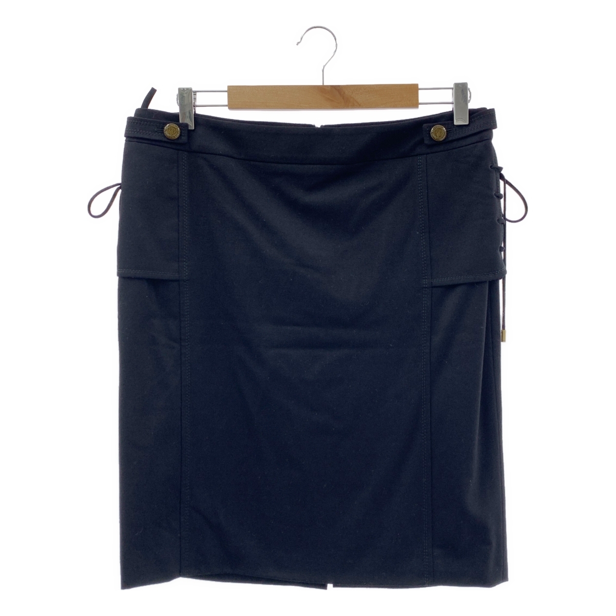 GUCCI / グッチ ウール ロゴボタン レースアップ バックジップ スリット スカート / 総裏地