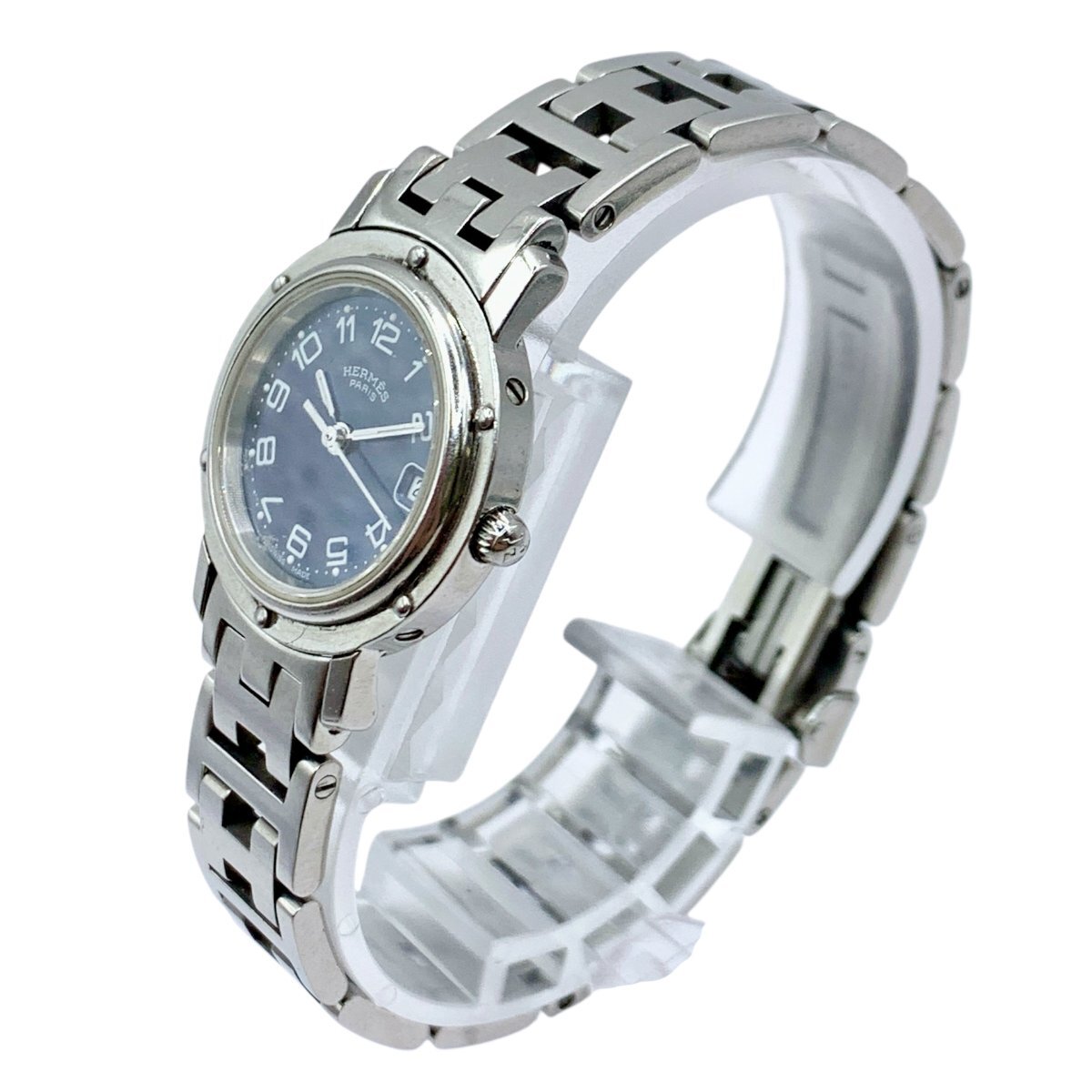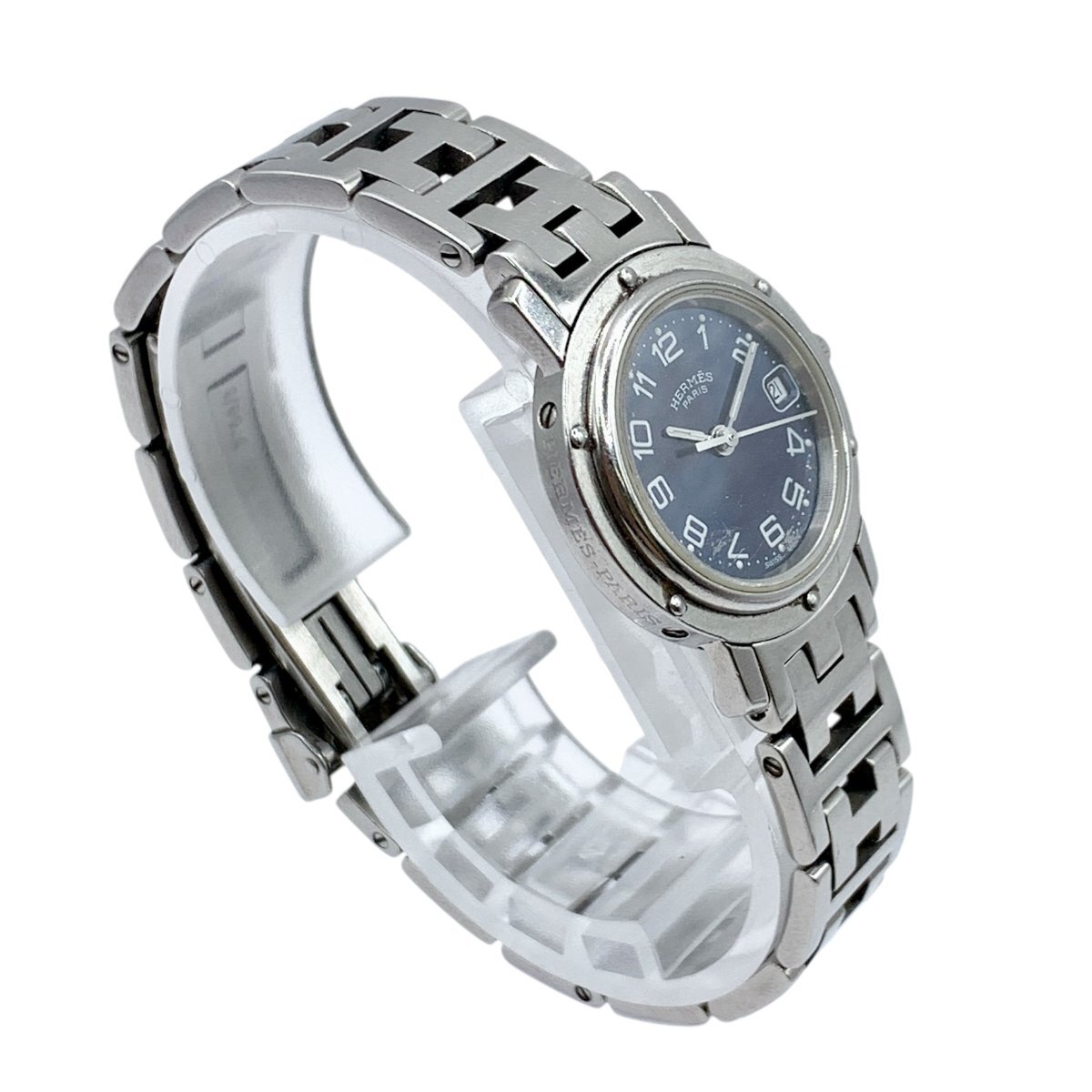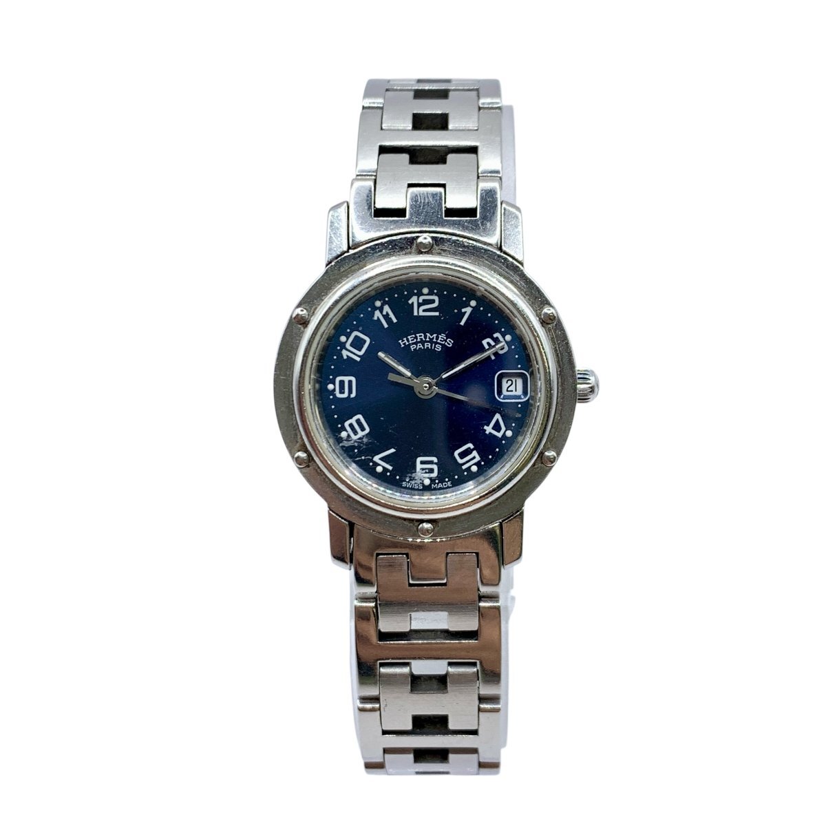 1円スタート! HERMES エルメス 時計 腕時計 クリッパー CL4.210 デイト ネイビー文字盤 不動 ジャンク品 コンパクトサイズ 蘇や(ITY240)