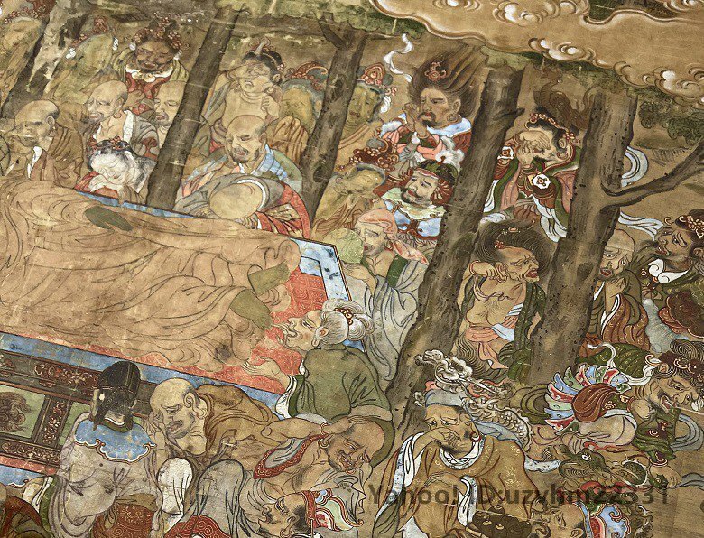 敦煌壁画 莫高窟 壁画 仏画 釈迦牟尼涅槃図 阿弥陀仏 仏画 仏教美術 絹本 掛け物 未表装
