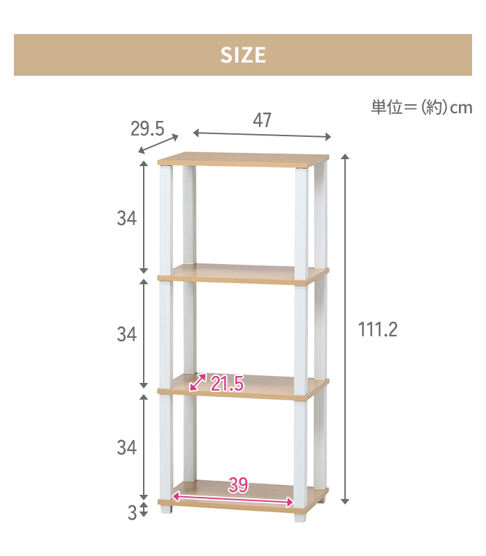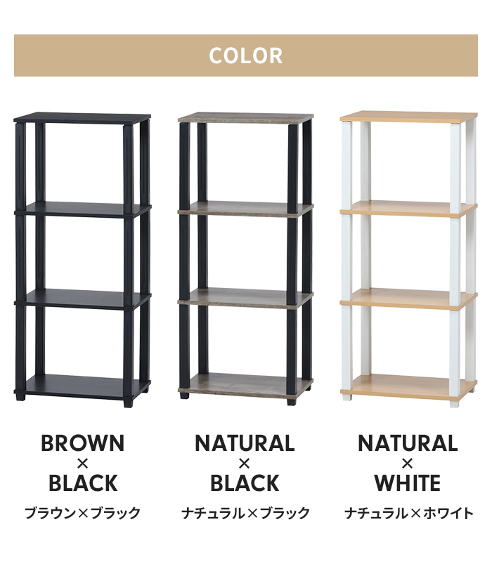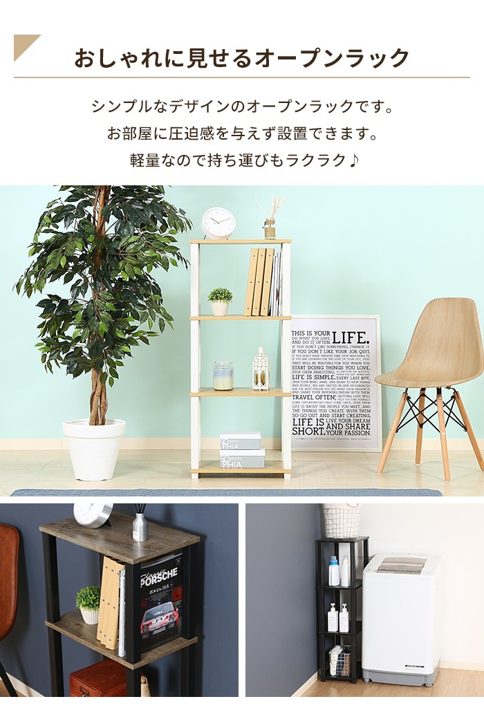 | 工具不要で簡単組み立て、シンプルデザインの4段ラック。 オープンタイプなのでお部屋に圧迫感を与えず設置できます。 お気に入りコレクションのディスプレイ用としても◎。 |
