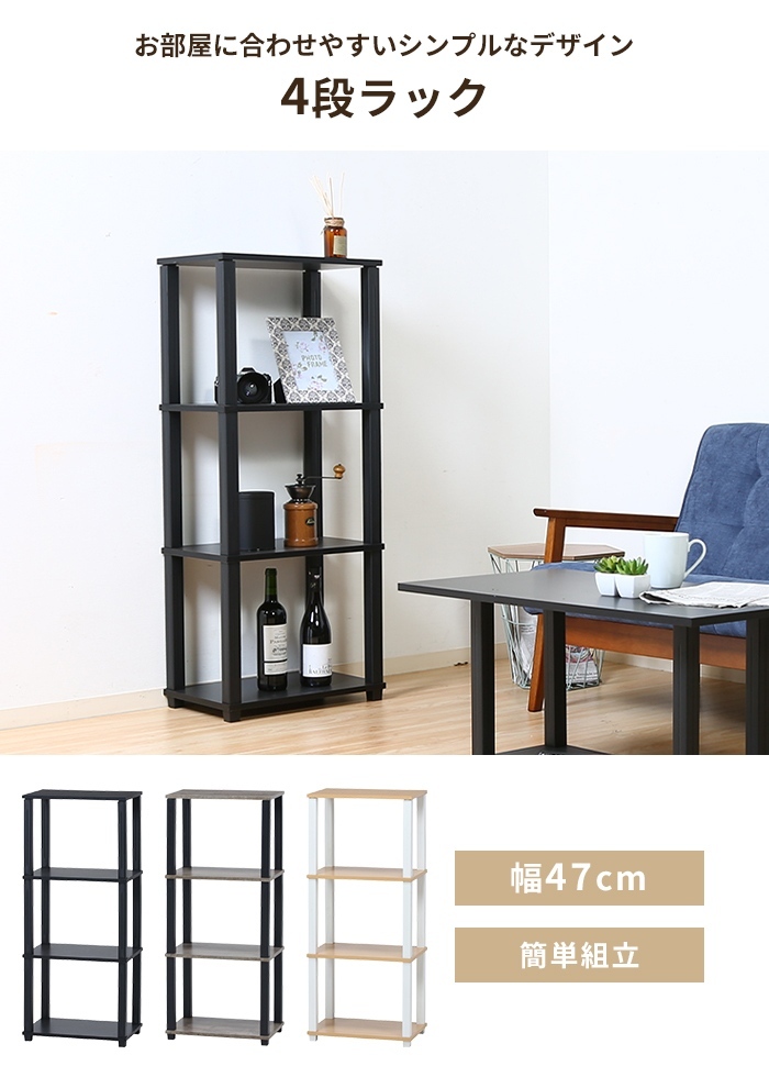 | オープンラック 4段 ラック 収納棚 幅47 ディスプレイラック フリーラック 本棚 小物収納 シェルフ インテリア 簡単組立 工具不要 おしゃれ シンプル リビング 寝室 ダイニング オフィス 会社 |