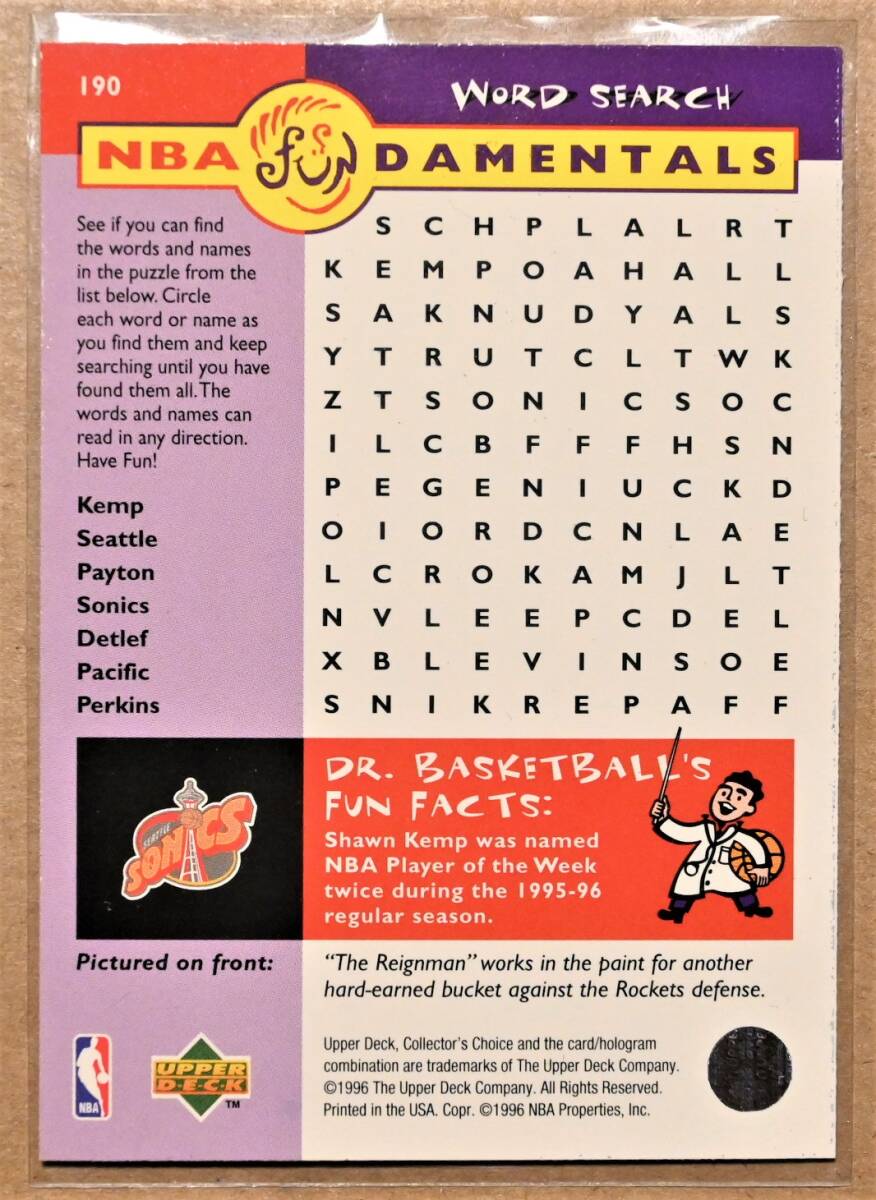 | SHAWN KEMP (ショーン・ケンプ) 1996 Upper Deck NBA DAMENTALS トレーディングカード | ||||||||||||||||||||