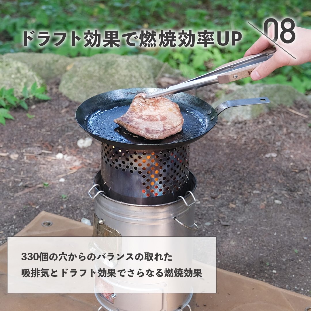 ・高燃焼構造で、だれでも簡単に着火。手軽に調理や焚火を楽しめます