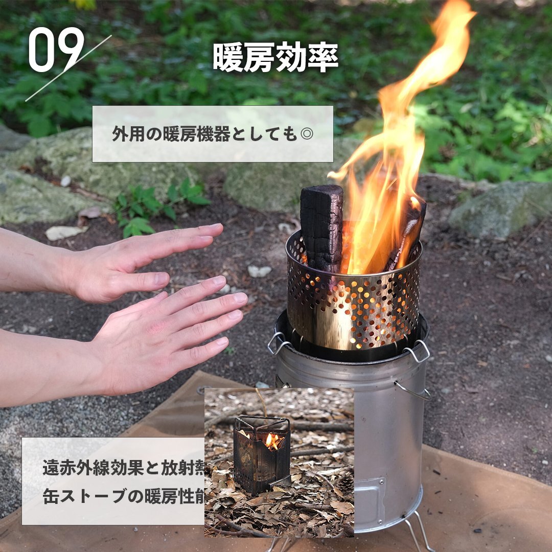 ・遠赤外線効果と放射熱で缶ストーブの暖房性能をアップ!外用の暖房機器としても◎