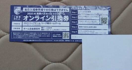 2025 AC長野パルセイロ トップチームのホーム自由席オンライン引換券です。
