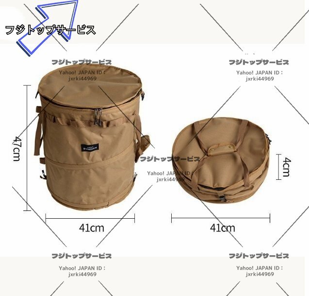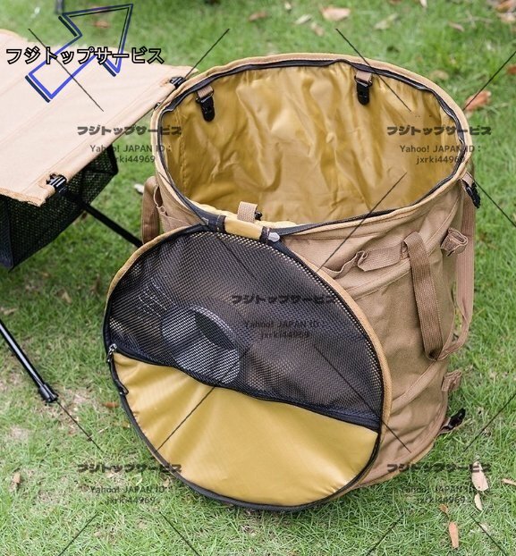 新品 キャンプ用ゴミ箱 62L 大容量 折りたたみ アウトドアバケツ 薪入れ 落ち葉袋 多用途 収納バッグ コンパクト 携帯 アウトドア ブラウン