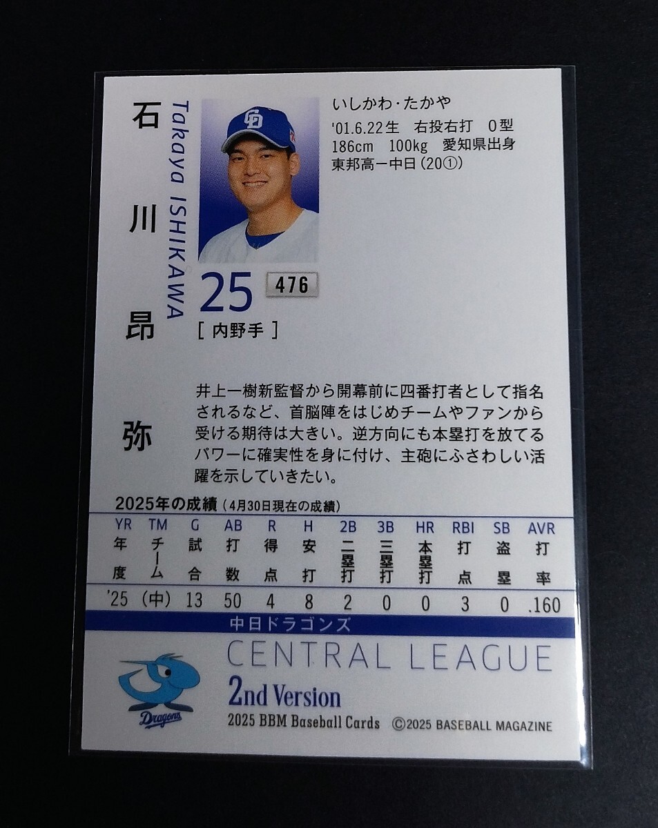2025年BBM 2nd 石川昂弥(中日)銀箔サイン入り!No,476。