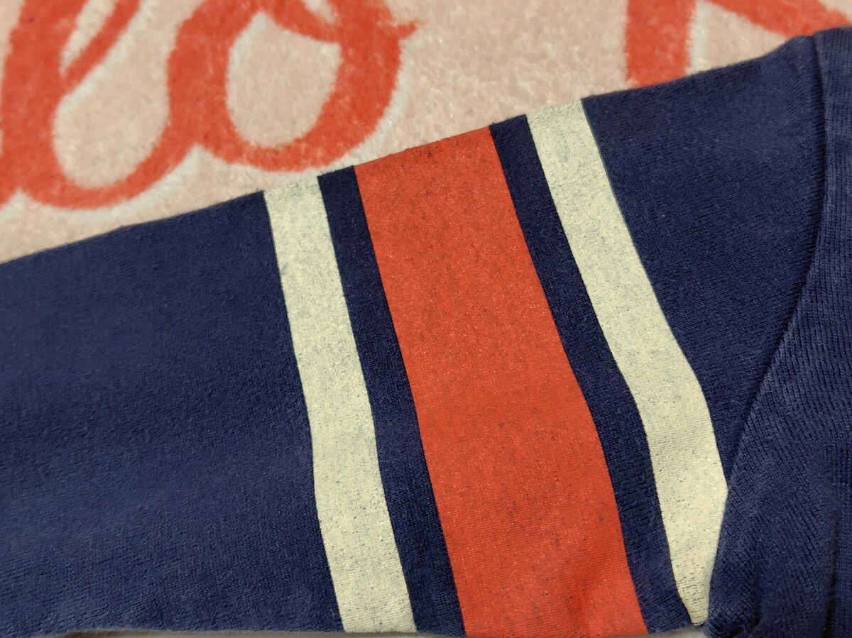 着用品になります。着用感ありますが、目立つシミ汚れ見当たりません。洗濯タグに記名を消した跡あり。状態の感じ方には個人差がありますので神経質な方は入札禁止。気になさらない方今の季節日中のお着替えに。