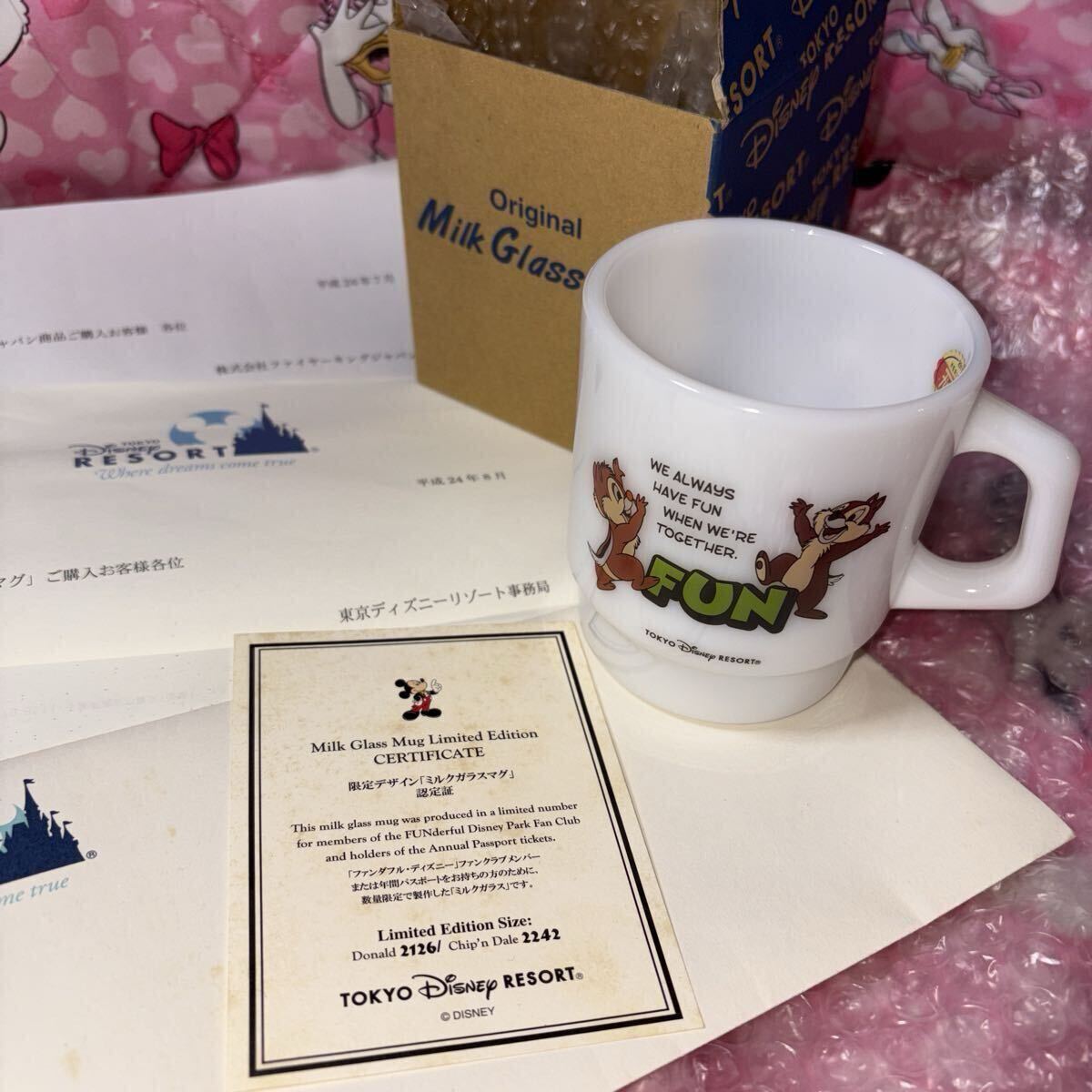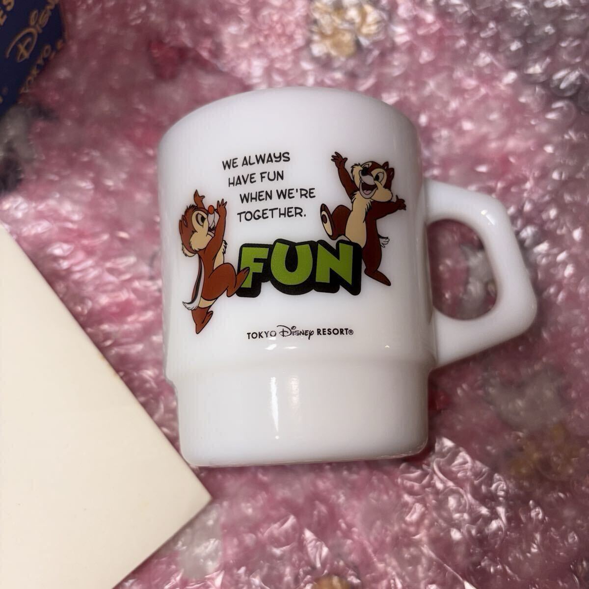 東京ディズニーリゾートにて、年パス保持者、もしくはファンダフル会員向けに受注販売された「ファイヤーキング ミルクガラスマグ チップ&デール」です。受注期間は2ヶ月弱でとても短い期間でした。