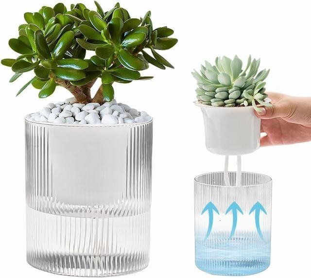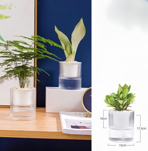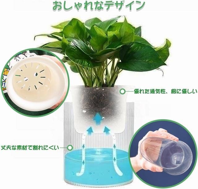 【水位チェックが簡単】透明の外観で、水の残量を一目で確認でき、補充のタイミングが分かりやすく、水やりの頻度や量を気にせず、植物の育成が可能で、初心者にとても優しいです。透明素材のモダンなデザインで、自宅やオフィスなどさまざまなシーンにマッチし、機能性と装飾性を兼ね備えています。
