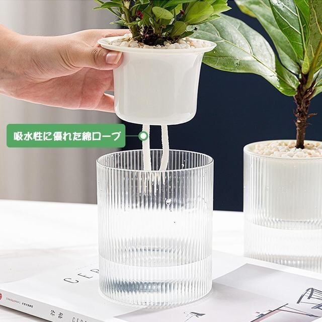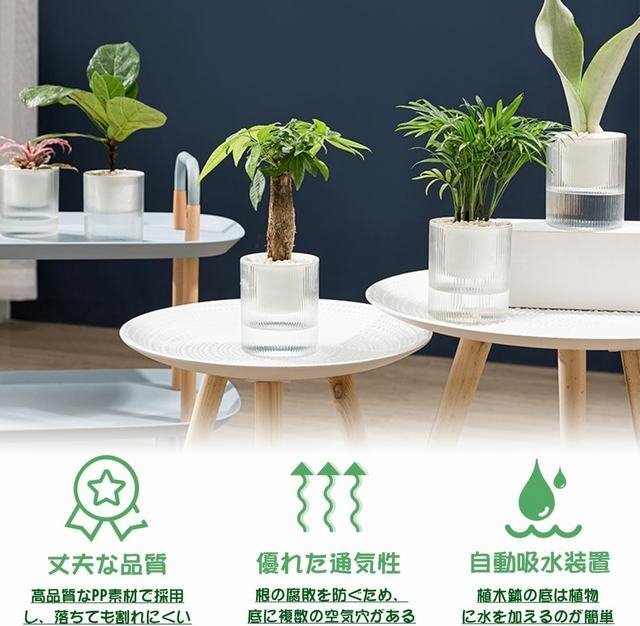 自動給水プランター 透明植木鉢 プラスチック 観葉植物鉢 自動水やり 自動給水キャップ ハーブ鉢 排水穴 お洒落 室外室内2個セット
